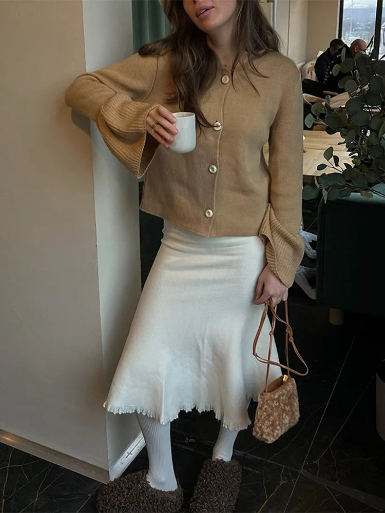 LIZAKOSHT - Women's Chic Solid Color Knitwear Cardigan Fuzzy Long Sleeve Button-down Front Closure Autumn Loose Fit Basic Sweaters 2025