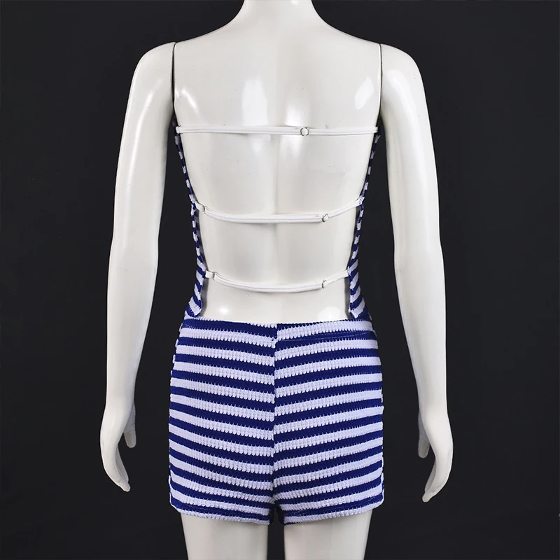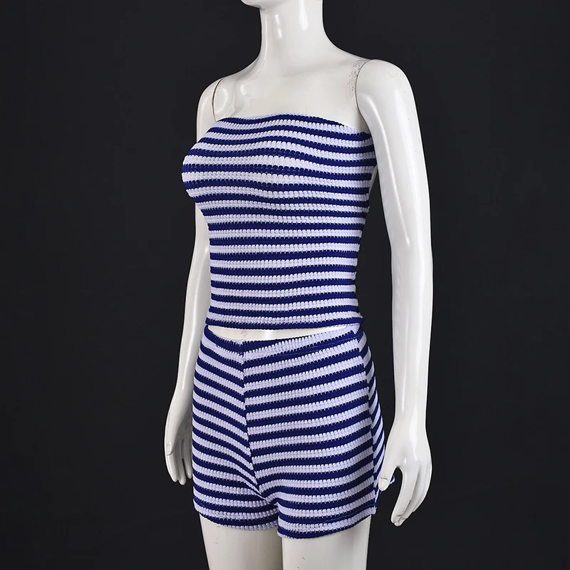 LIZAKOSHT - Women's Contrasting Color Casual Stripe Matching Set Strapless Cropped Vest+Shorts Fashion Sexy Slim Fit Holiday Streetwear
