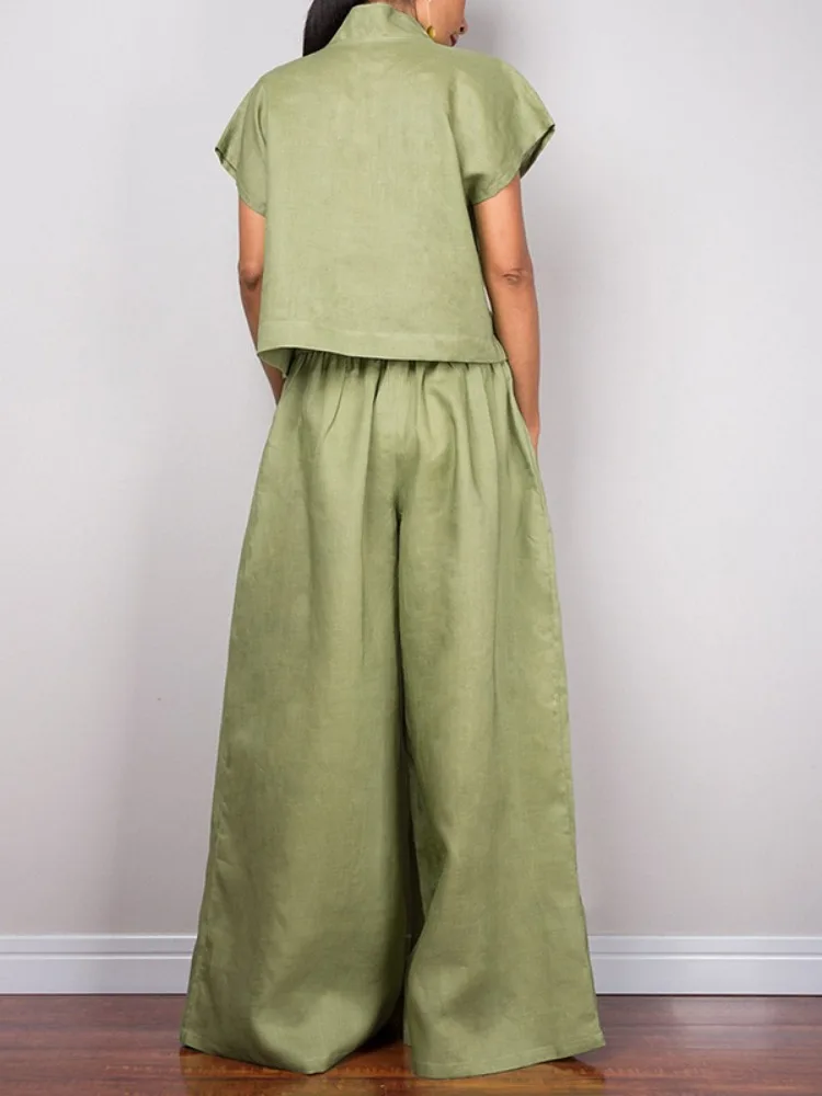 LIZAKOSHT - Women's Cotton and Linen Casual Pants Elastic High Waist Full Length Wide Leg Trousers Summer Loose Fit Bottoms