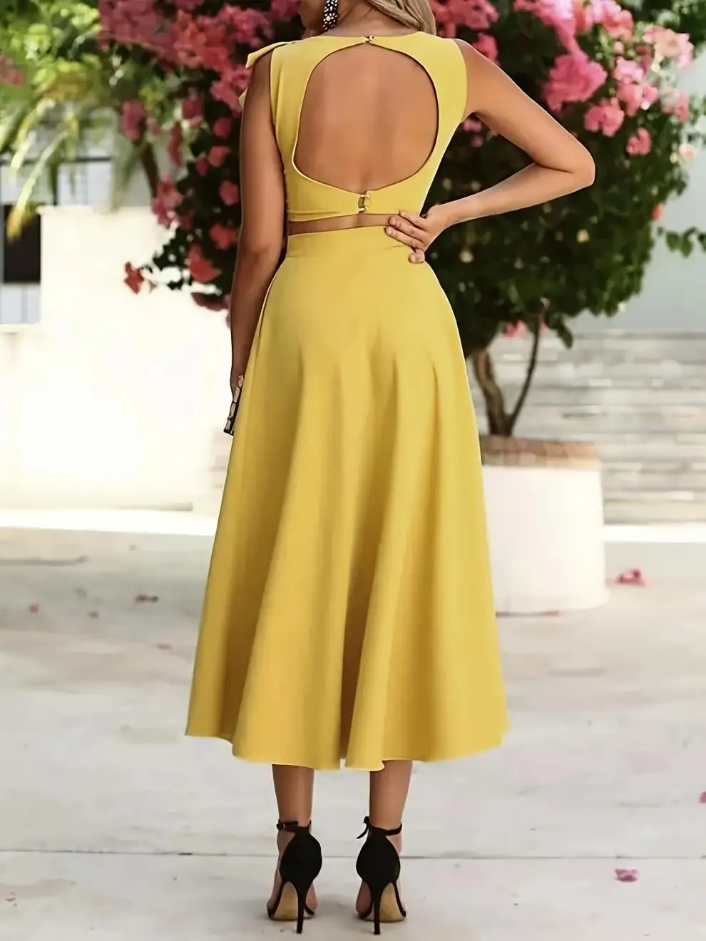 LIZAKOSHT  -  Women's Design Sense Sleeveless Backless Long Skirt Temperament Commuting Fashion Two Piece Set