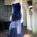 LIZAKOSHT - Women's Drape Neck Formal Maxi Dresses French Elegant Shinny Cocktail Party Dress Spaghetti Straps Mermaid Evening Gown