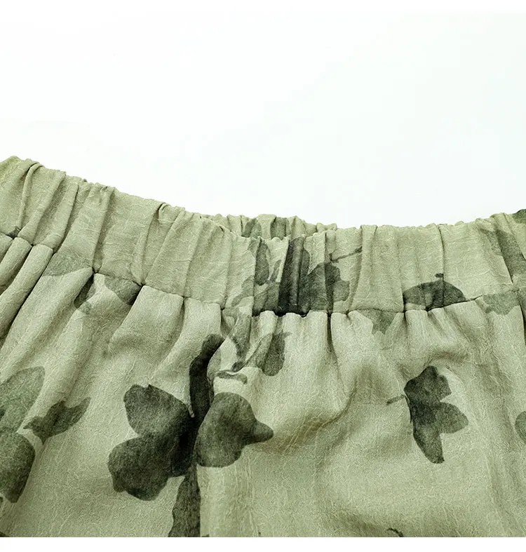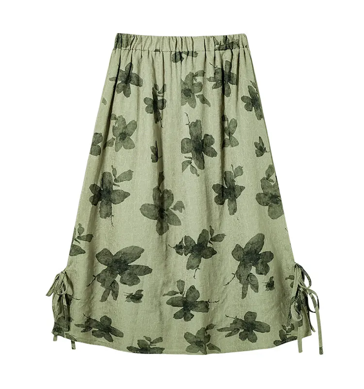 LIZAKOSHT - Women's Green Floral Printed Bow Lace-up Slimming Skirts Summer High Waist A-line Mid-length Temperament Skirt Female Clothing