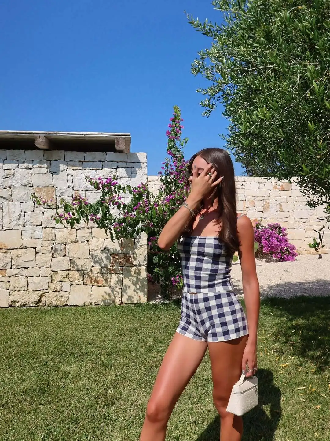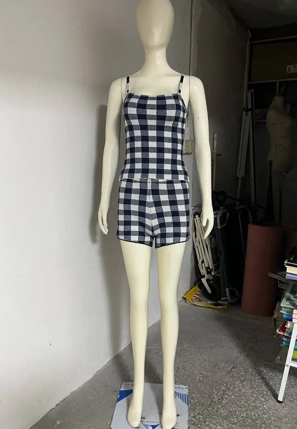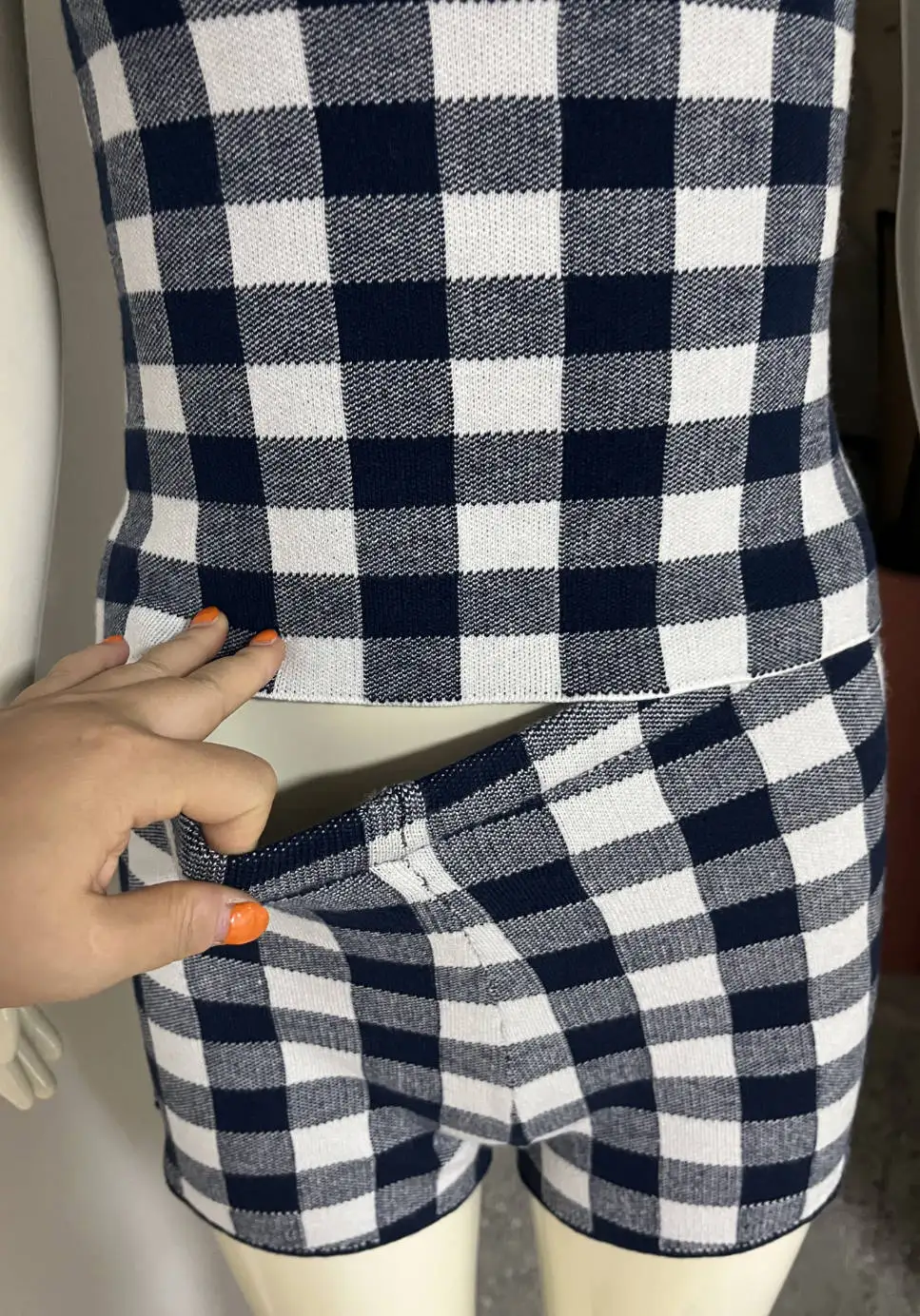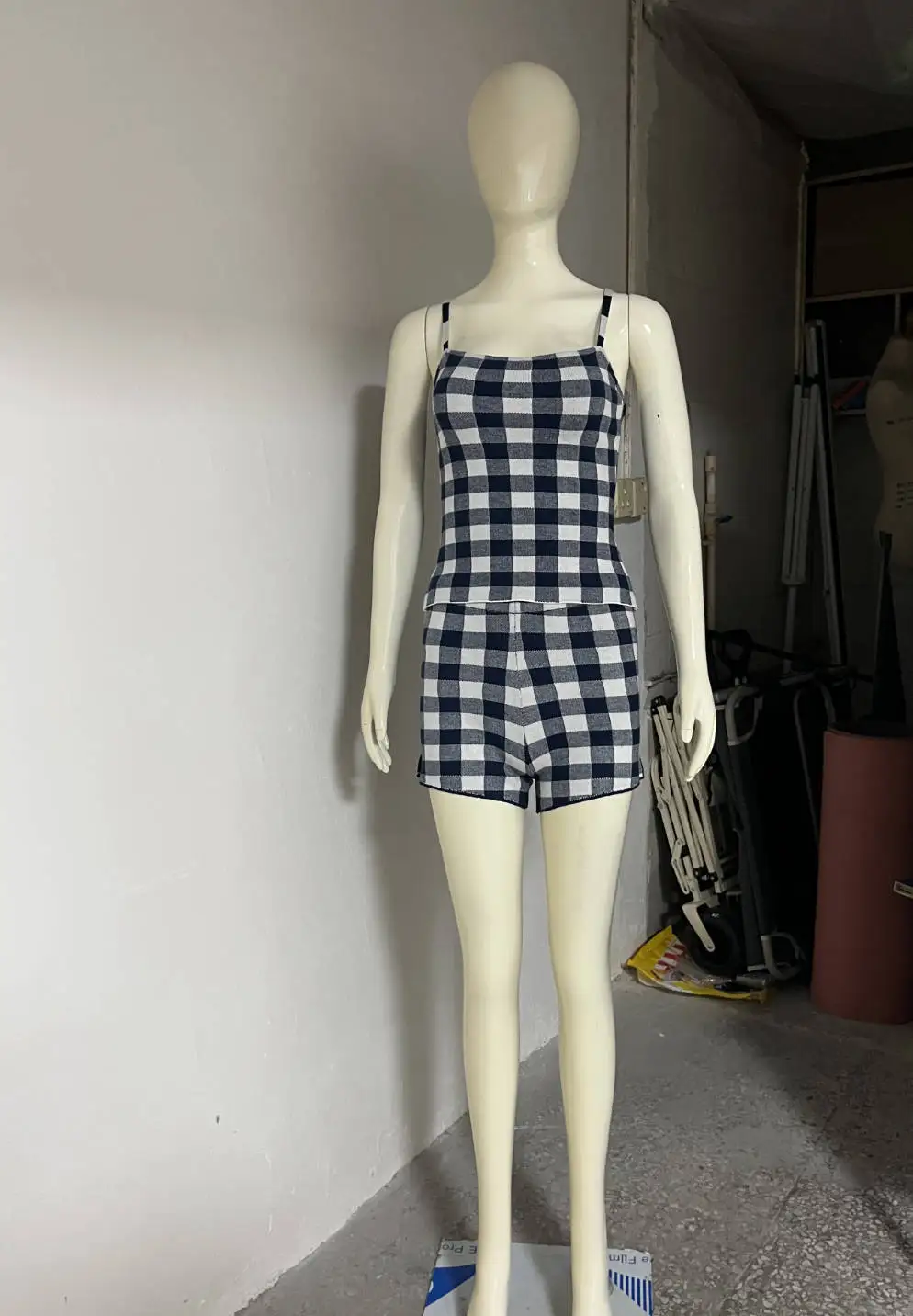 LIZAKOSHT - Women's Knitted Shorts 2-Piece Set Sexy Plaid Halter Top Casual Shorts Set Retro Streetwear Party Vacation Shorts Set