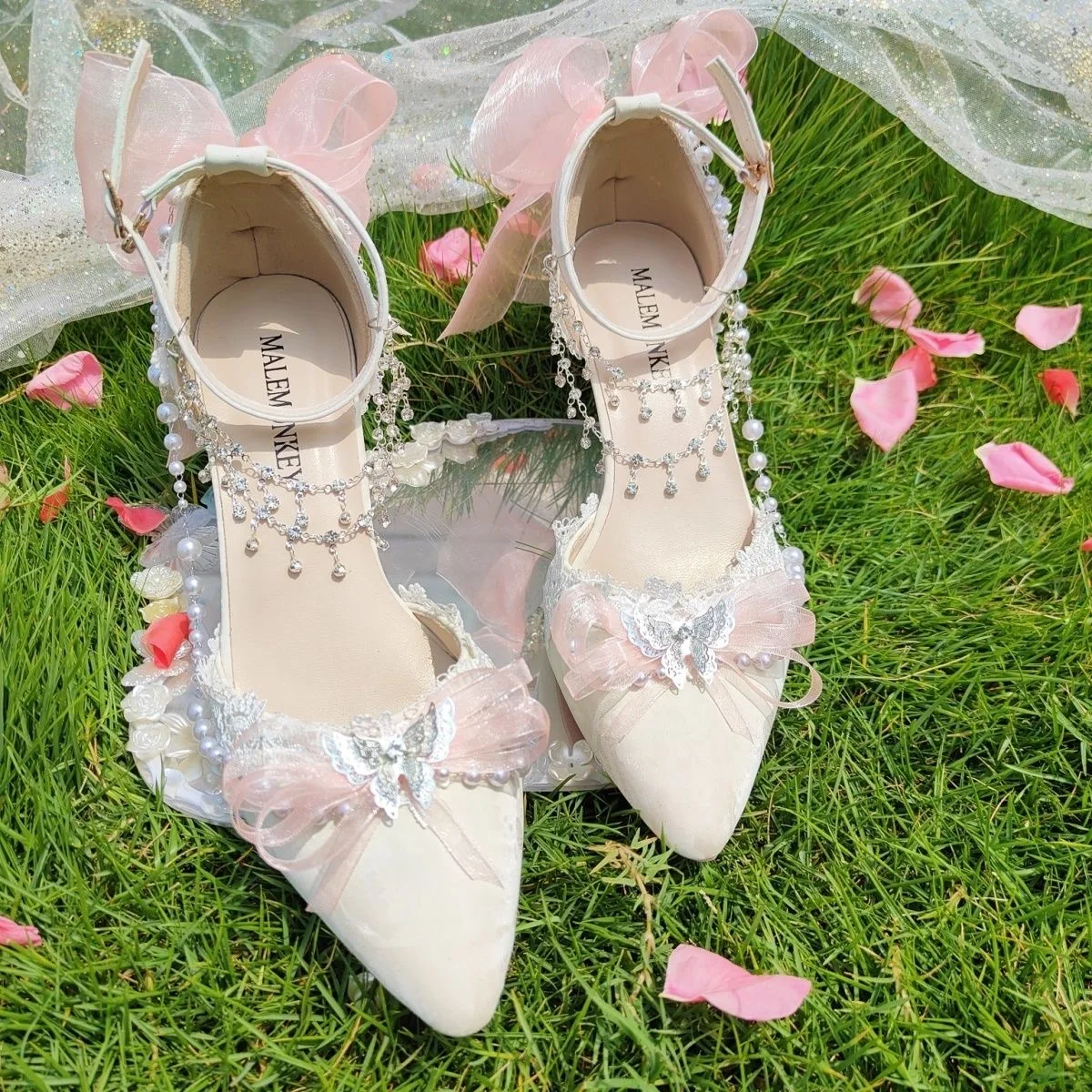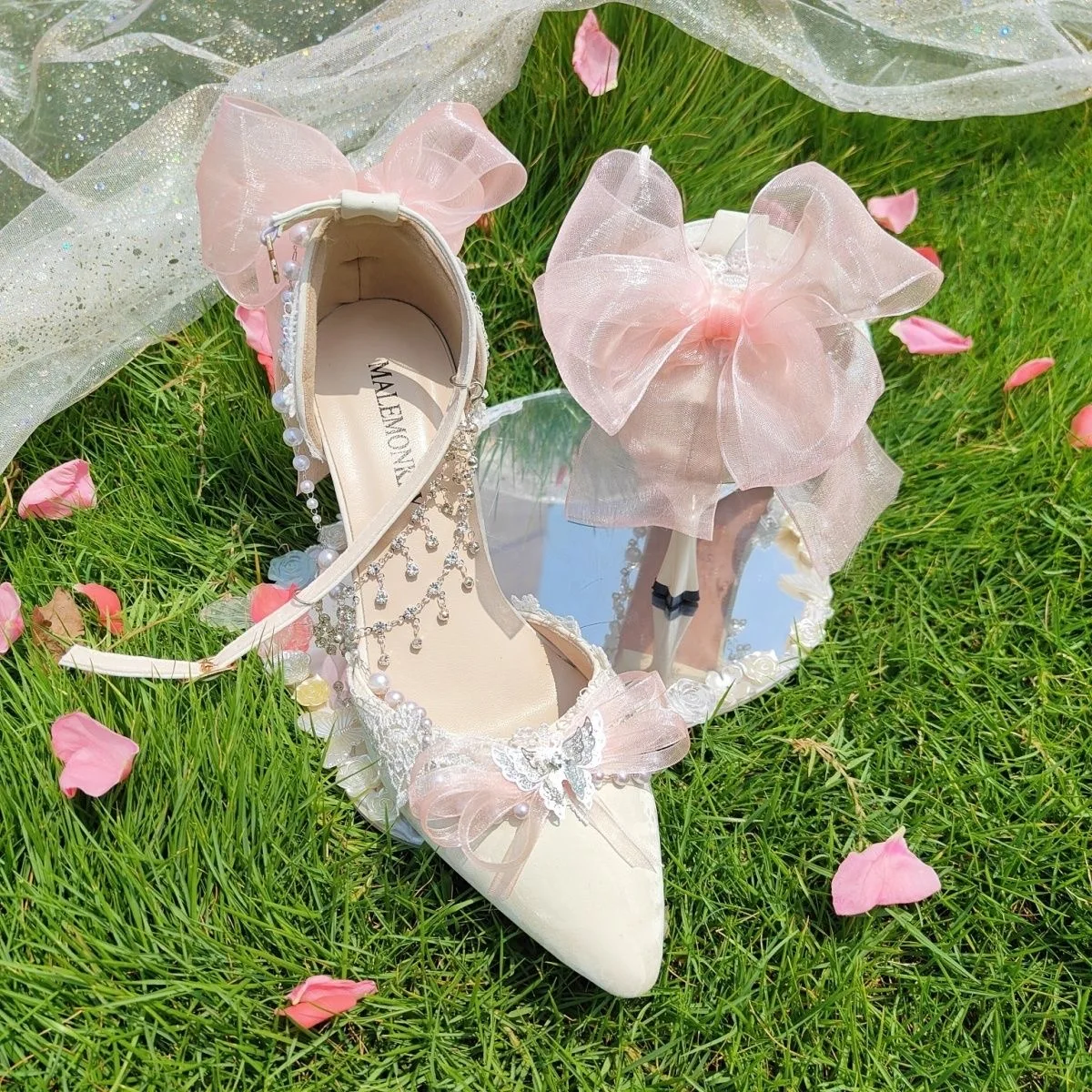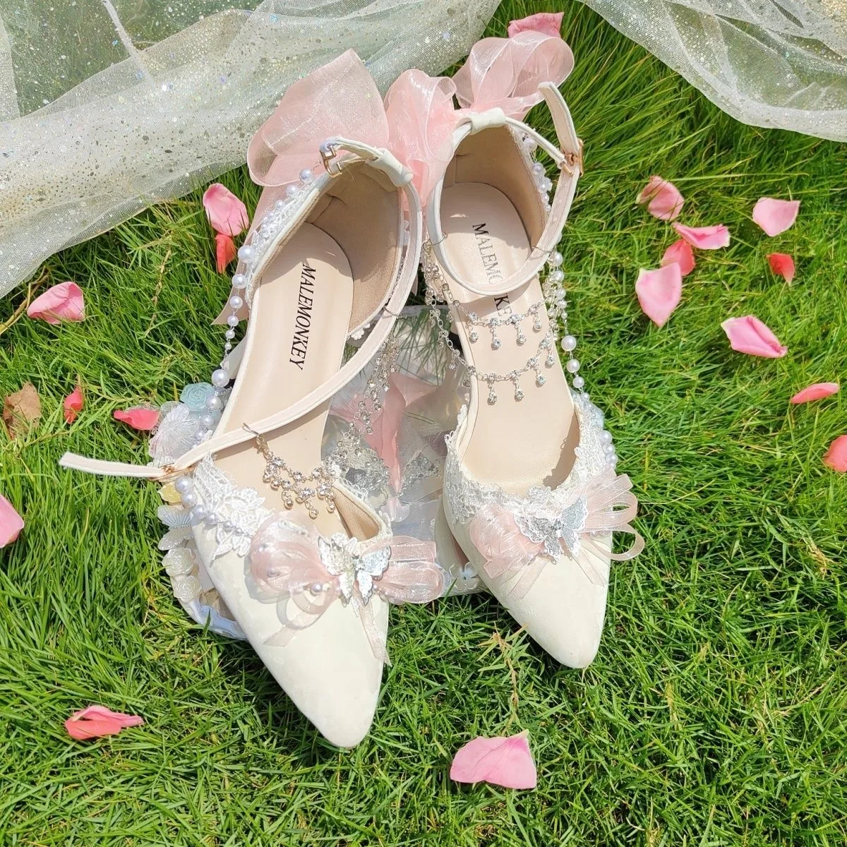 LIZAKOSHT - women's luxury low heel shoes lolita mary jane shoes Weddings bridal shoes bow butterfly y2k slingback heels for ladies
