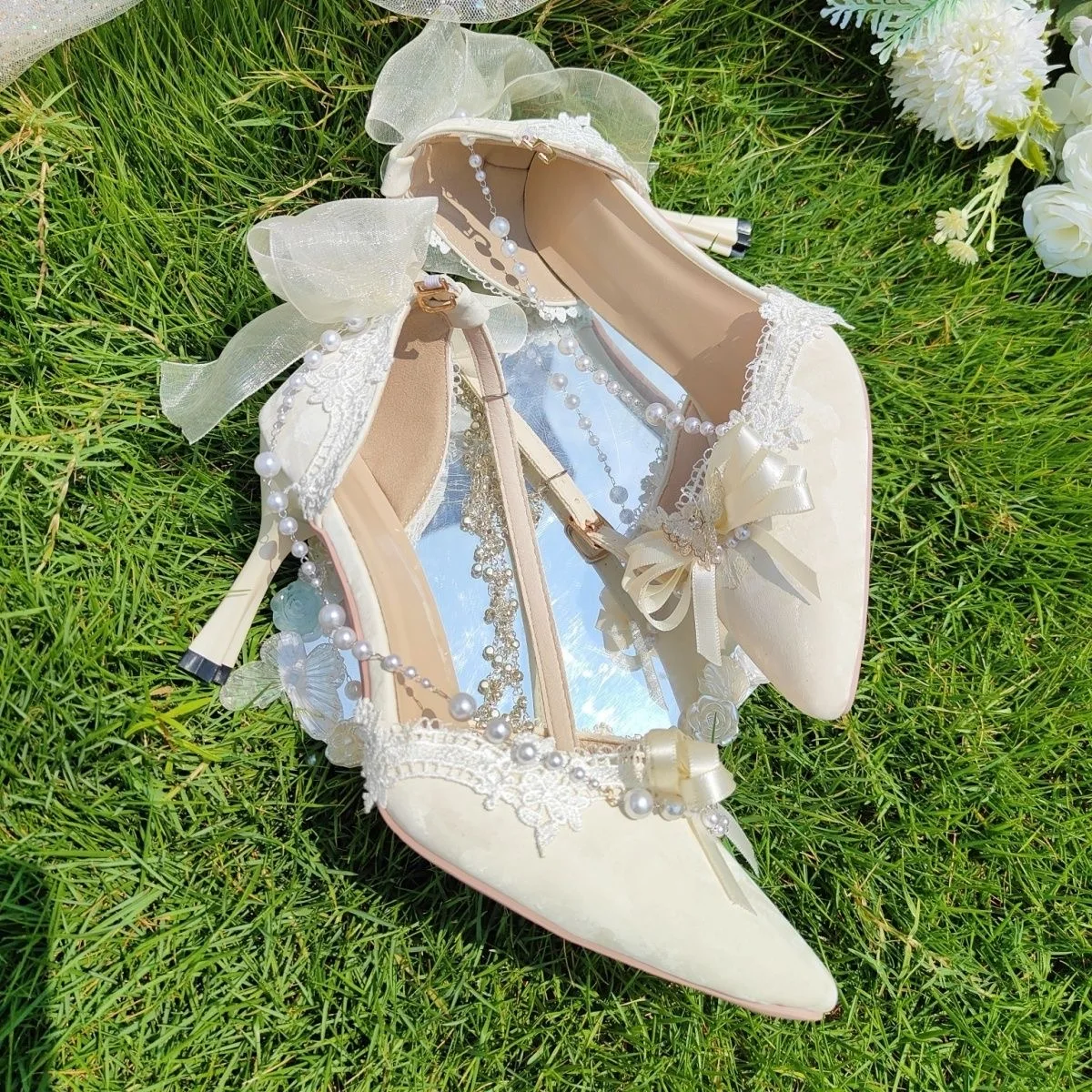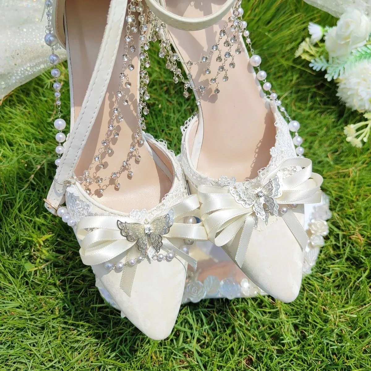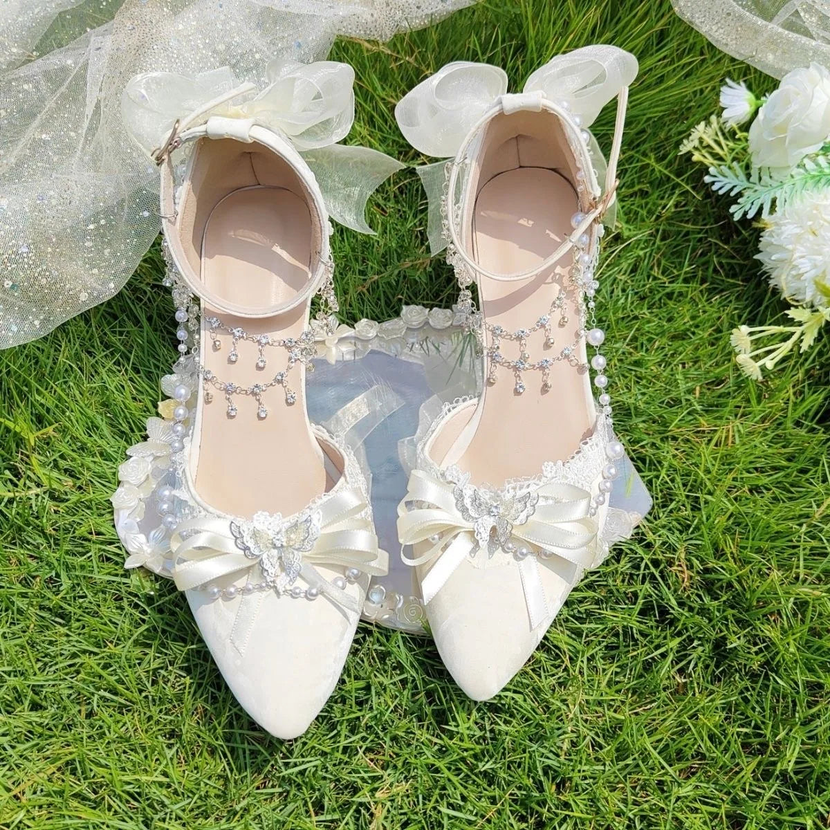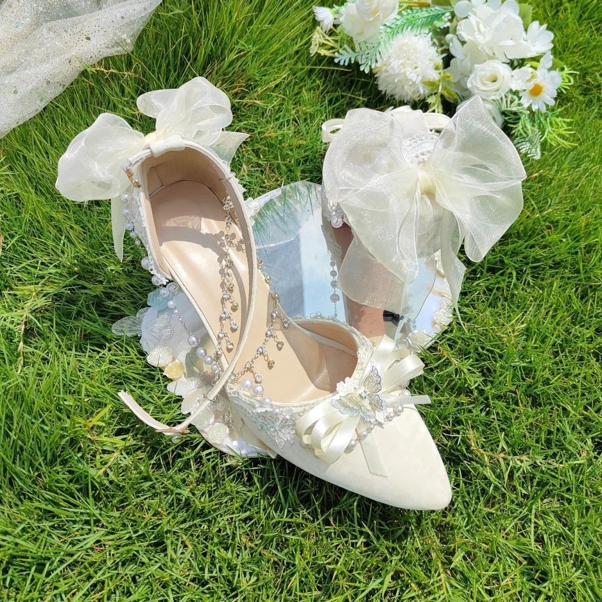 LIZAKOSHT - women's luxury low heel shoes lolita mary jane shoes Weddings bridal shoes bow butterfly y2k slingback heels for ladies