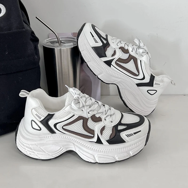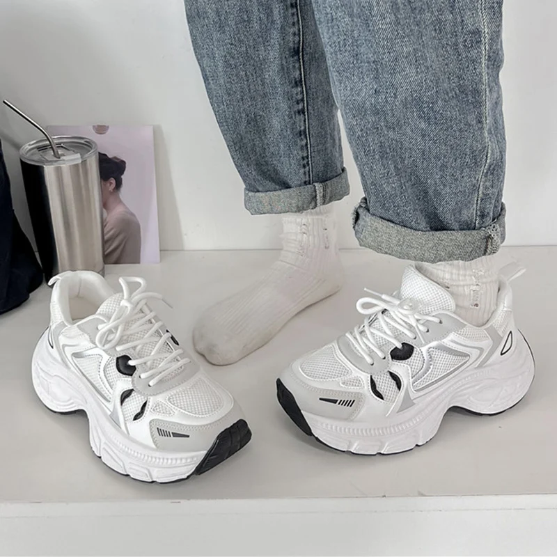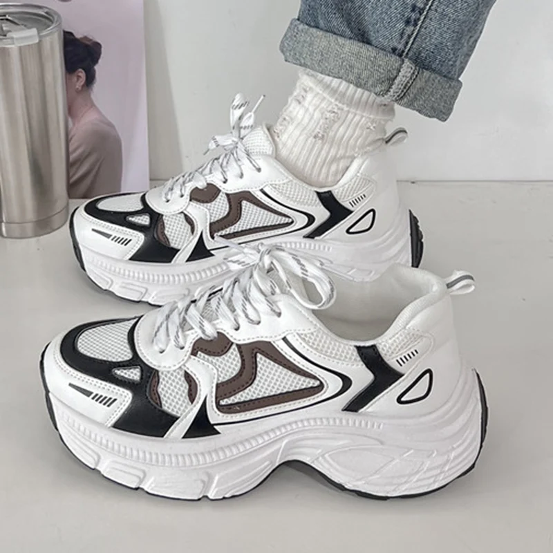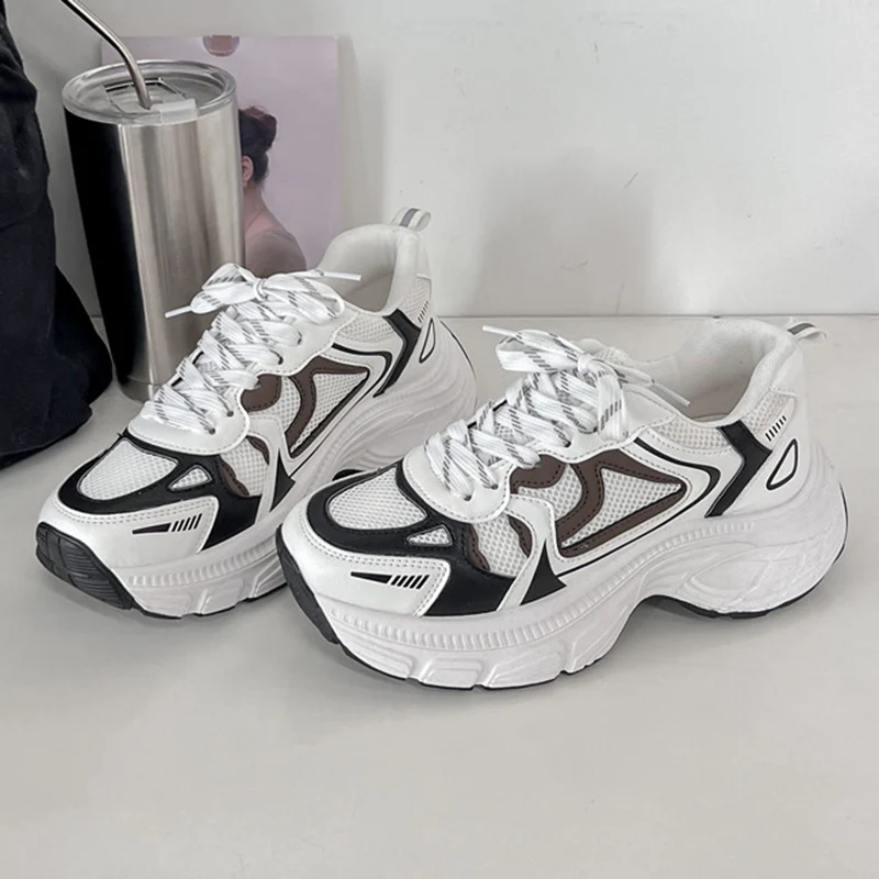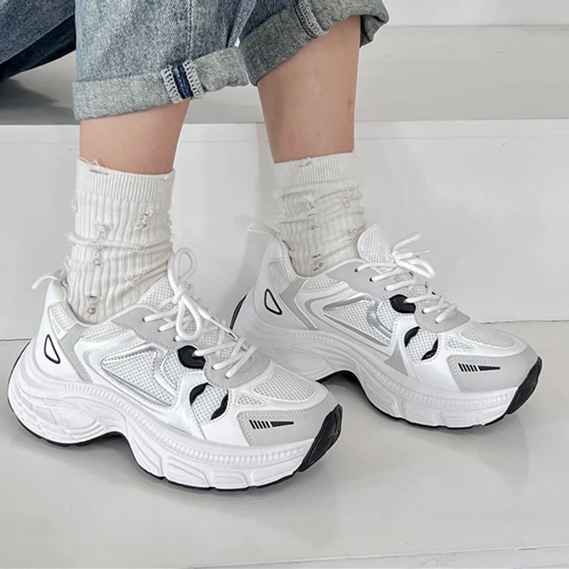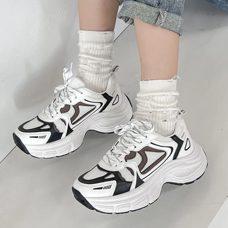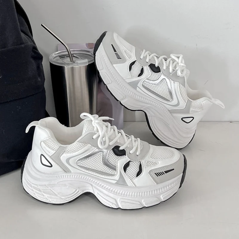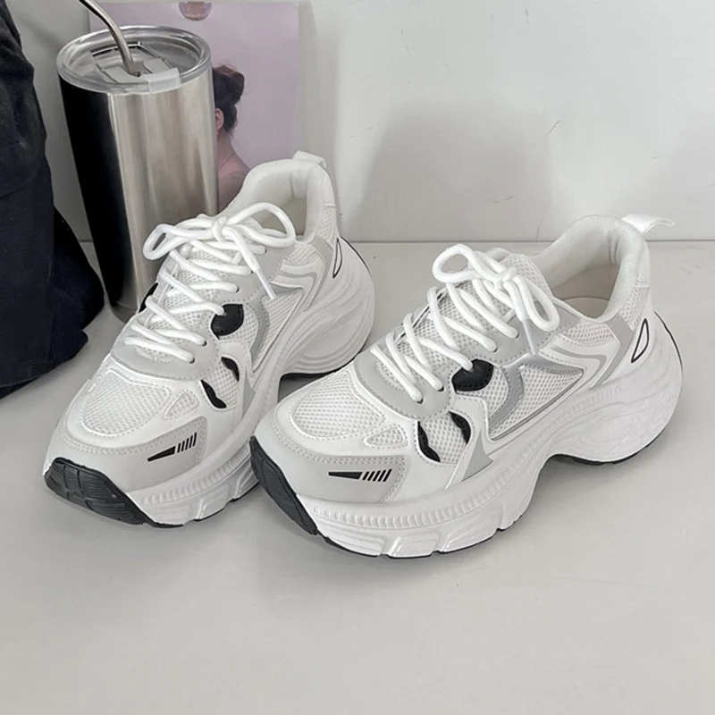 LIZAKOSHT - Women's Platform Mesh Sports Shoes Fashion Breathable Walking Chunky Sneakers Woman Thick Sole Non Slip Lace Up Running Shoes
