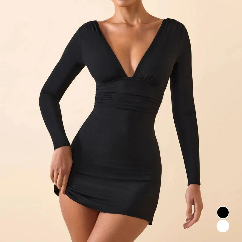 LIZAKOSHT - Women's Sexy V-neck Backless Long Sleeved Fashionable New Short Skirt Hot Selling Hip Hugging Dress