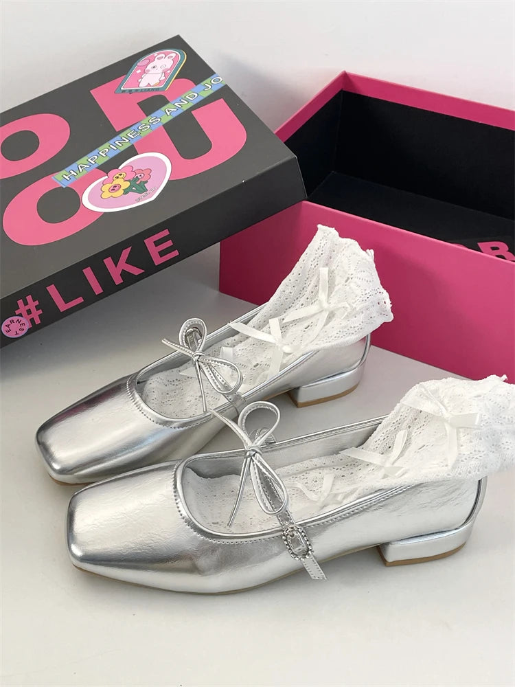 LIZAKOSHT Women's shoes with thick soles, French silver single shoes, versatile and gentle Mary Jane shoes