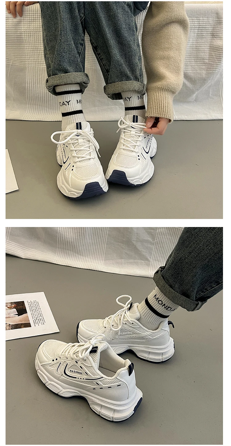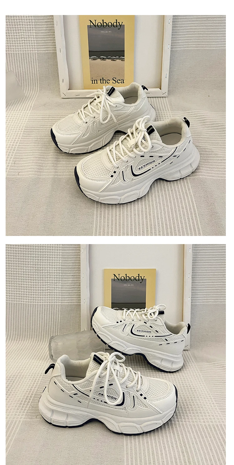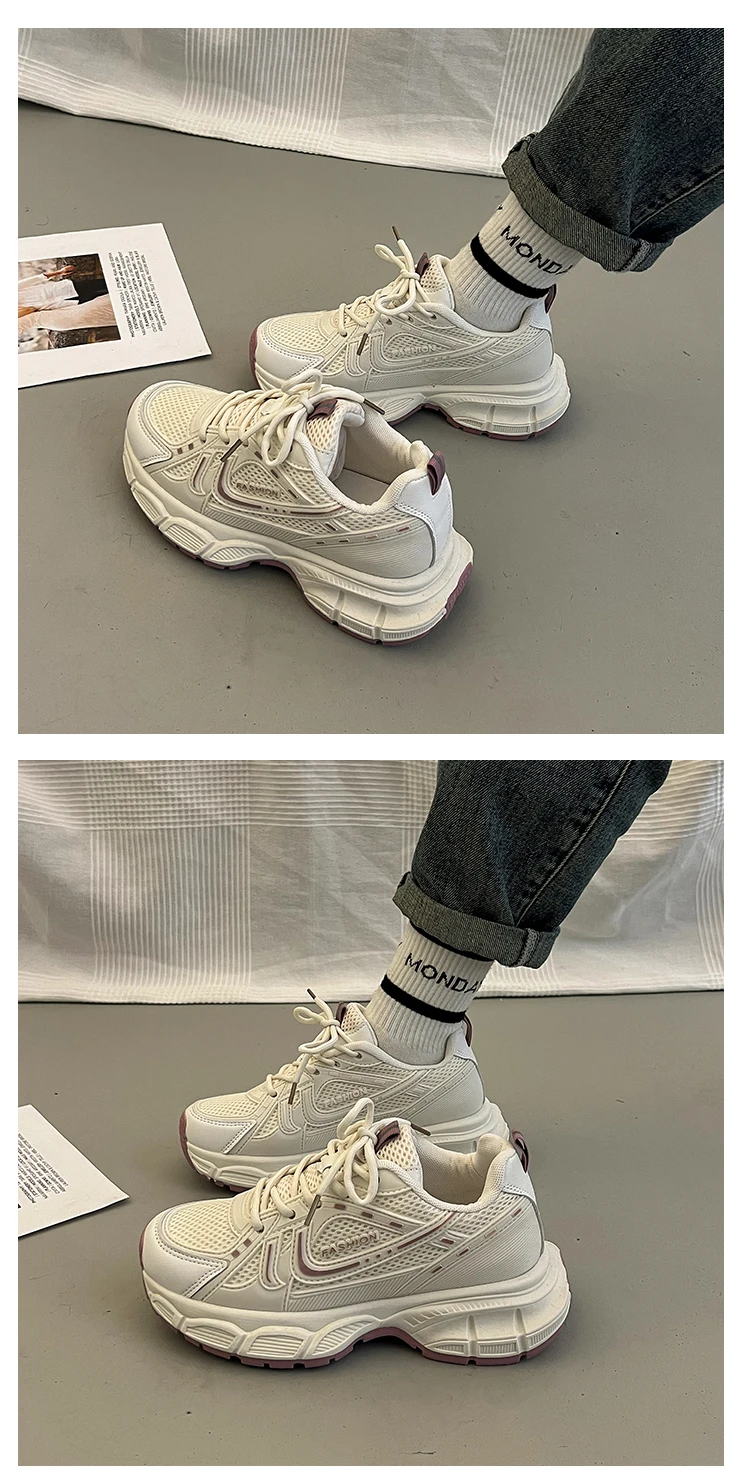LIZAKOSHT - Women's Sneakers With Platform Shoes Tennis Female Woman-shoes Thick Sole Casual Fashion Heels Trainers Roses Fabric PU Rib