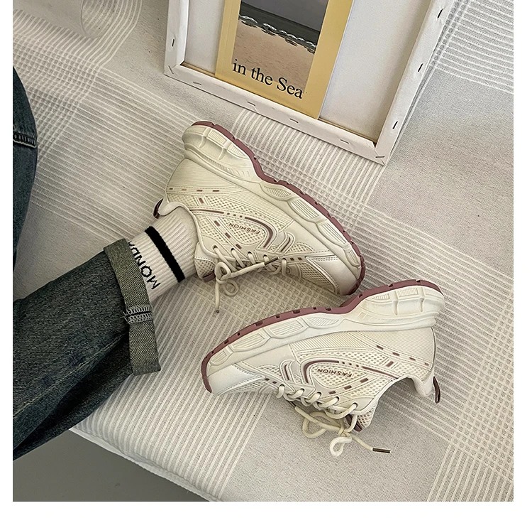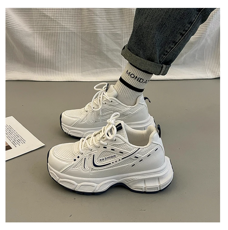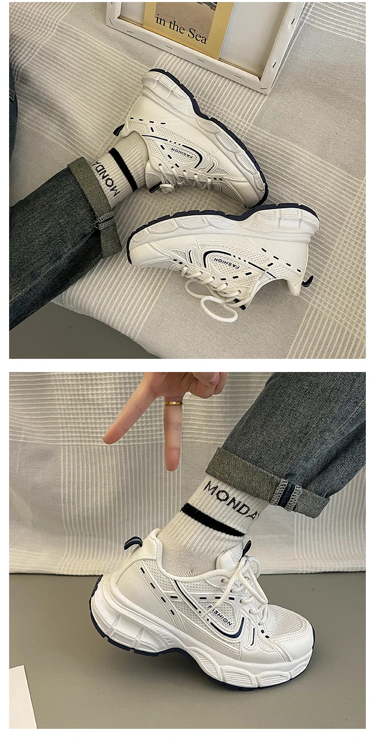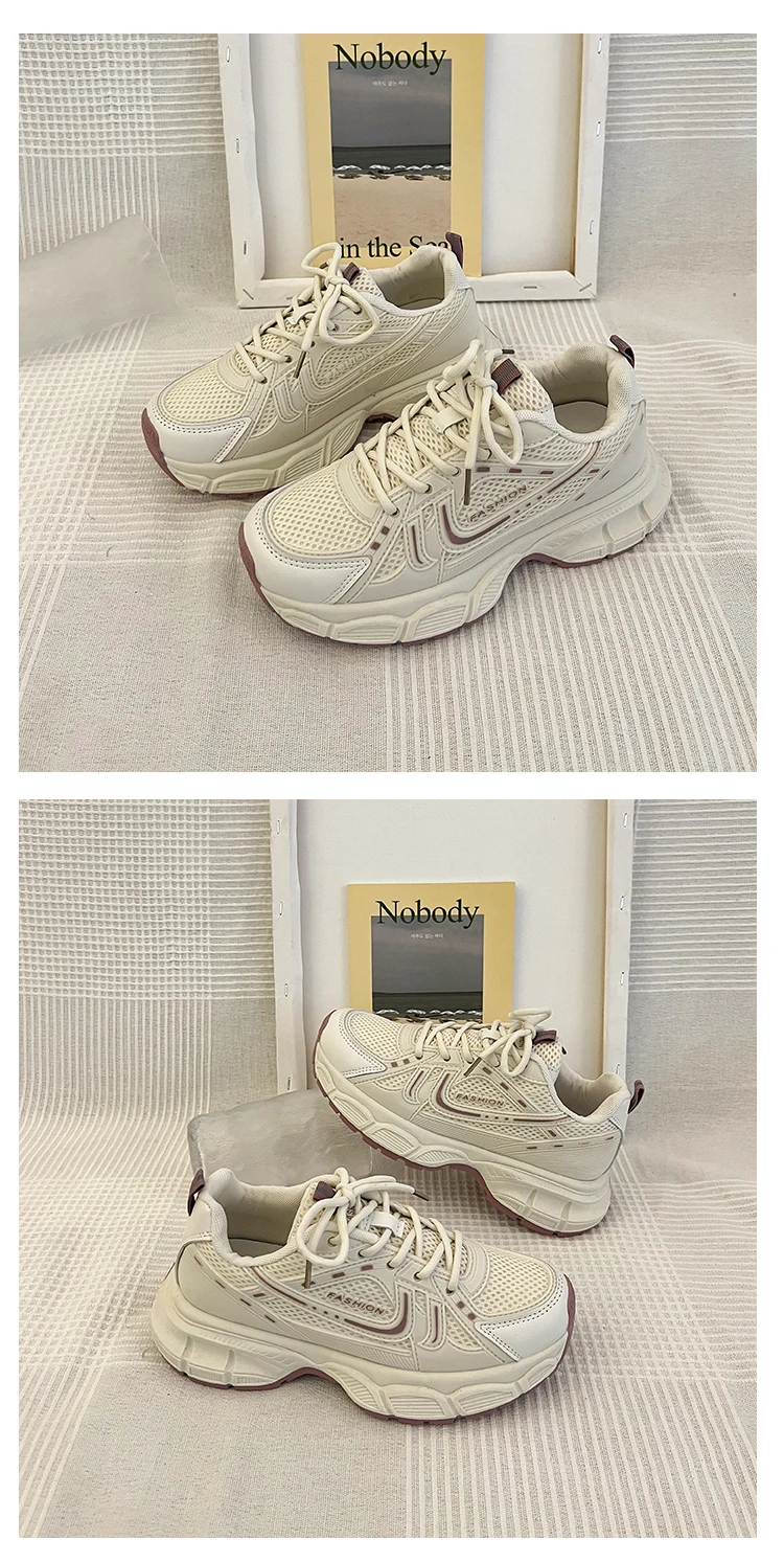LIZAKOSHT - Women's Sneakers With Platform Shoes Tennis Female Woman-shoes Thick Sole Casual Fashion Heels Trainers Roses Fabric PU Rib