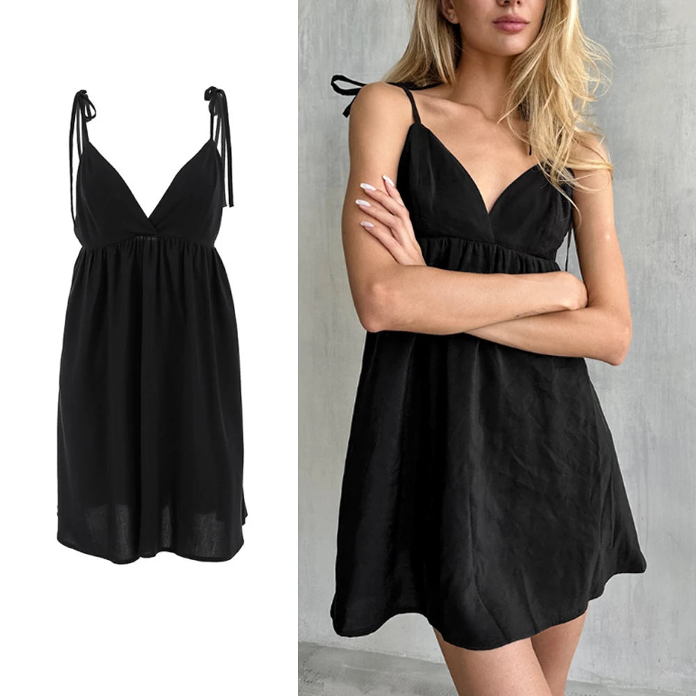 LIZAKOSHT - Women's Soft Cotton Nightdress V Neck Sleeveless Sleepwear Tie Waist Short Nightgown Comfortable Sexy Loungewear Dress