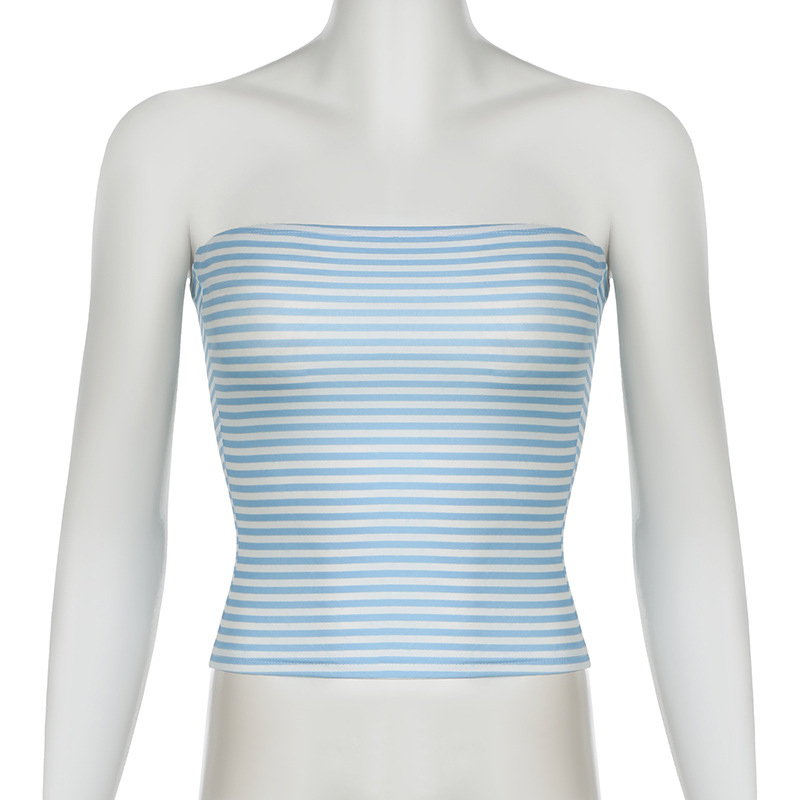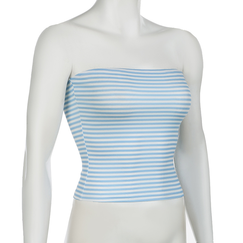 LIZAKOSHT  -  Women's Striped Print Ruched Crop Tube Top, Casual Strapless Cropped Top for Summer, Ladies Clothes for Daily Wear