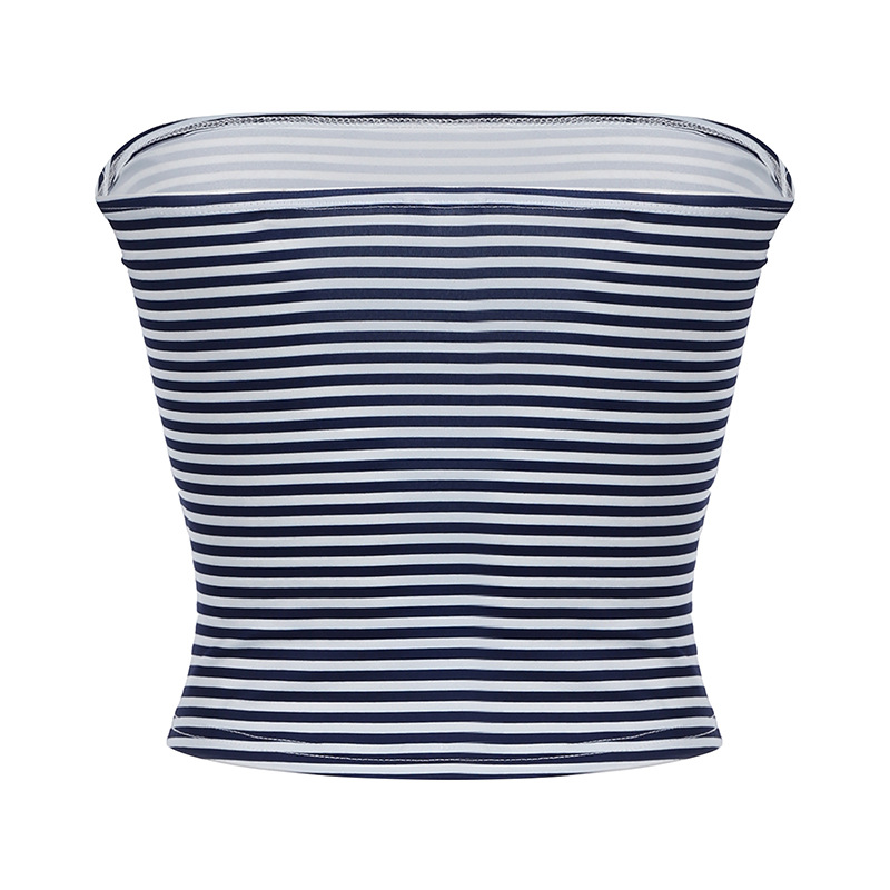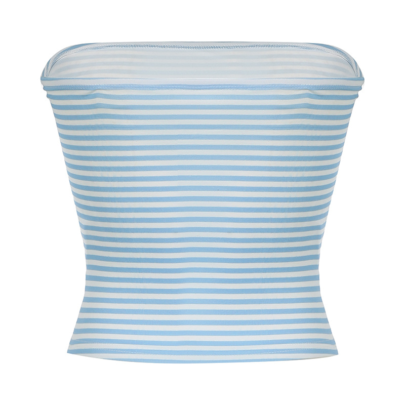 LIZAKOSHT - Women's Striped Print Ruched Crop Tube Top, Casual Strapless Cropped Top for Summer, Ladies Clothes for Daily Wear