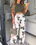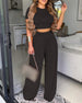 LIZAKOSHT - Women's Two-piece Set, 2 Counts Chic Plain Crop Tee & Plicated Wide Leg Pants Set, Co-ord Set Summer, Summer Clothes Women