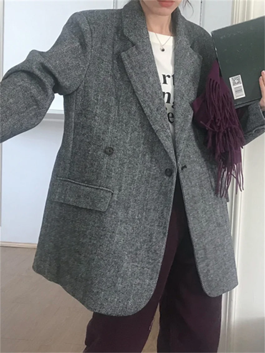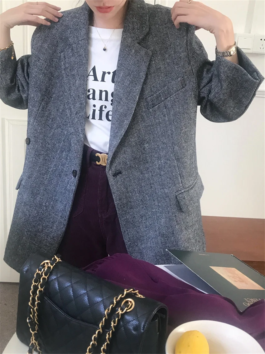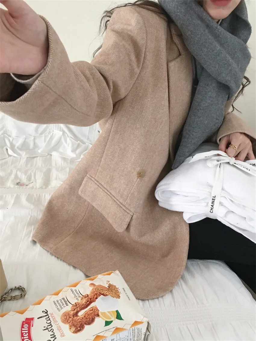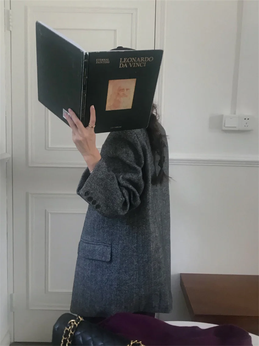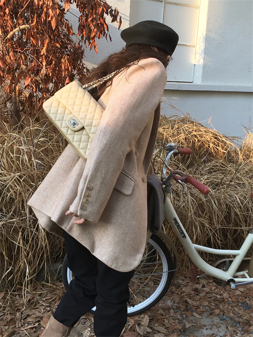 LIZAKOSHT - Work Wear Vintage Blazers Women Chic Slim New Autumn Elegant Office Lady High Street Loose Daily Wool Clothe