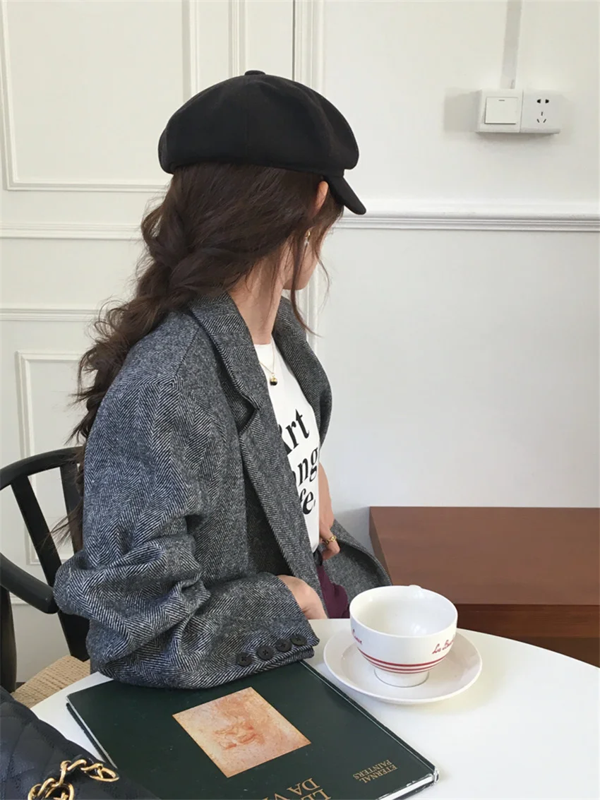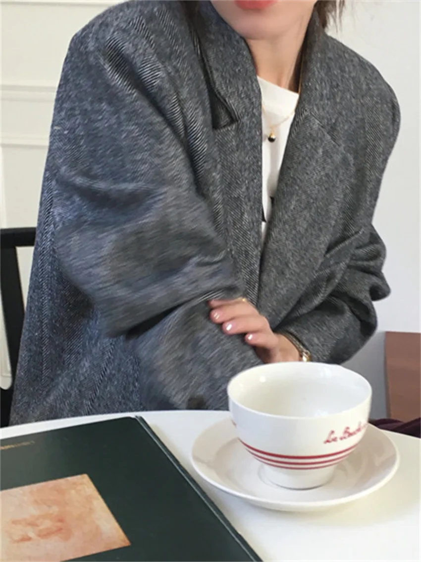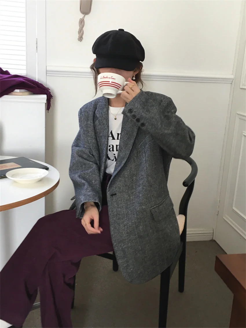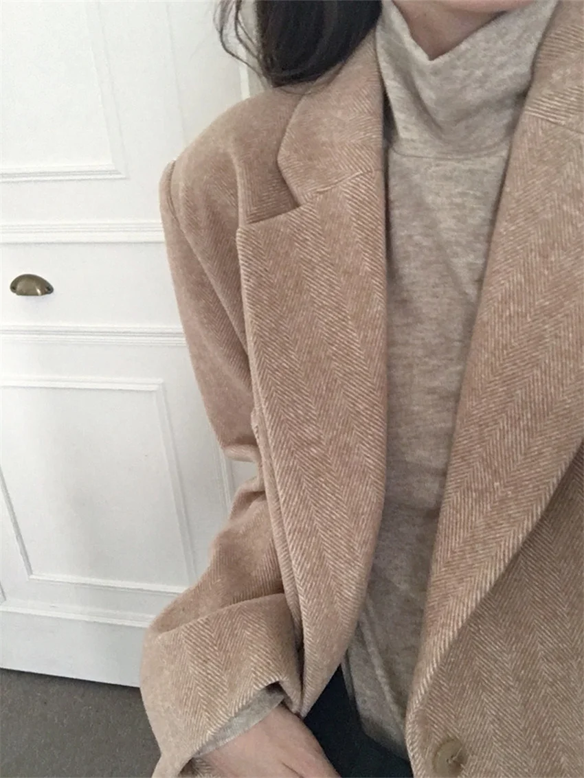 LIZAKOSHT - Work Wear Vintage Blazers Women Chic Slim New Autumn Elegant Office Lady High Street Loose Daily Wool Clothe