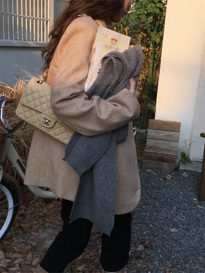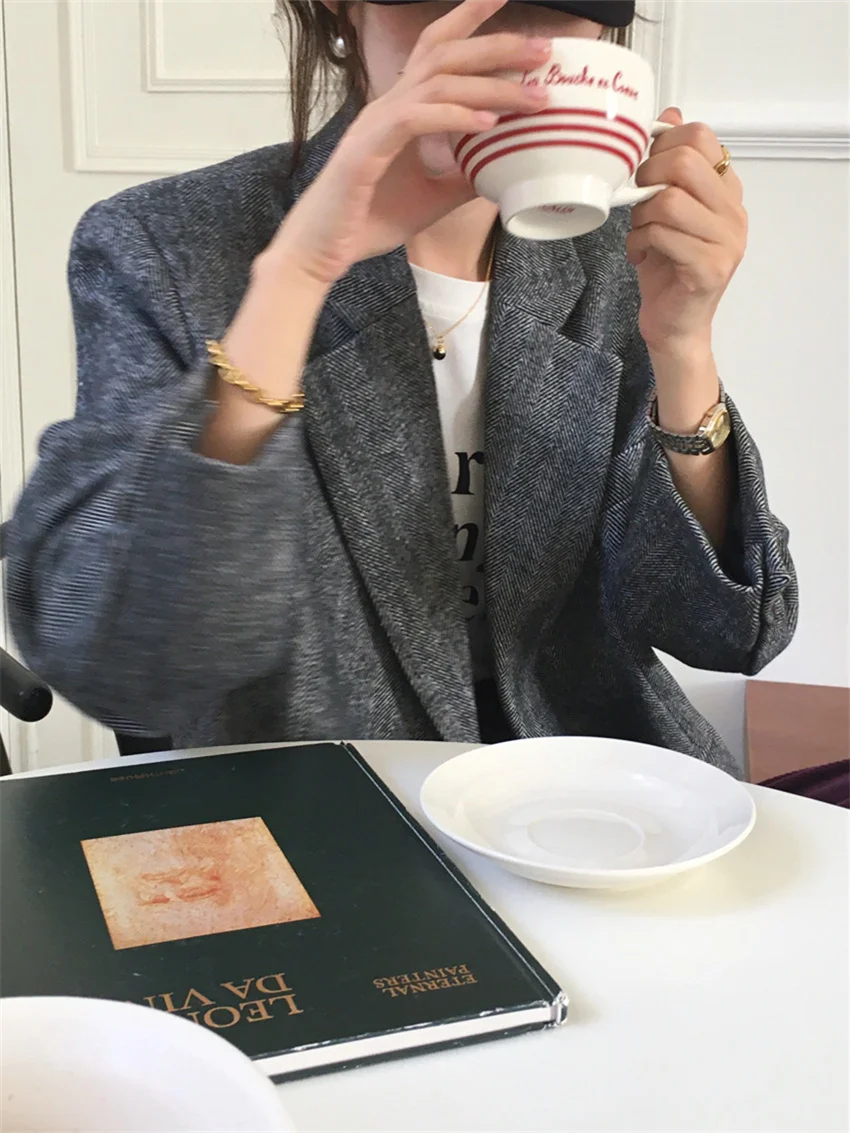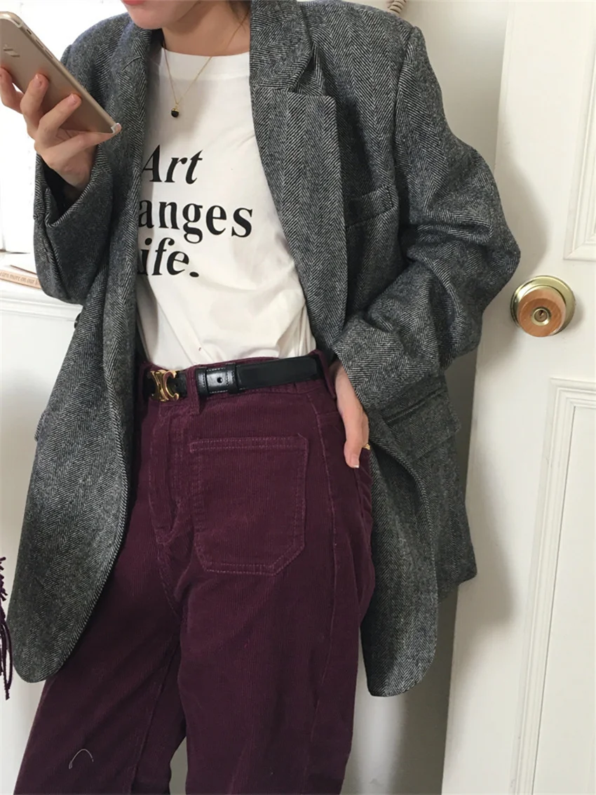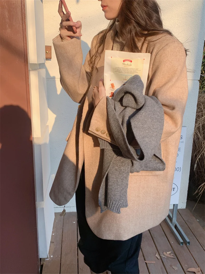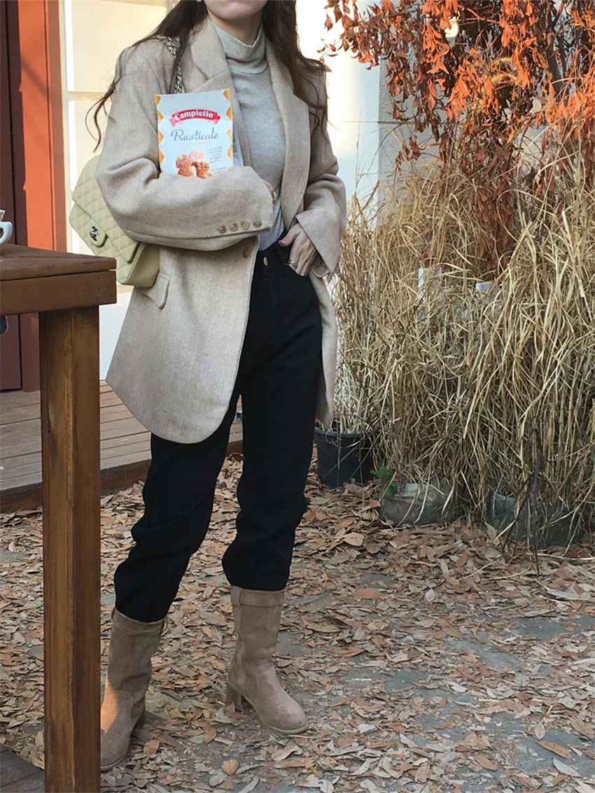 LIZAKOSHT - Work Wear Vintage Blazers Women Chic Slim New Autumn Elegant Office Lady High Street Loose Daily Wool Clothe