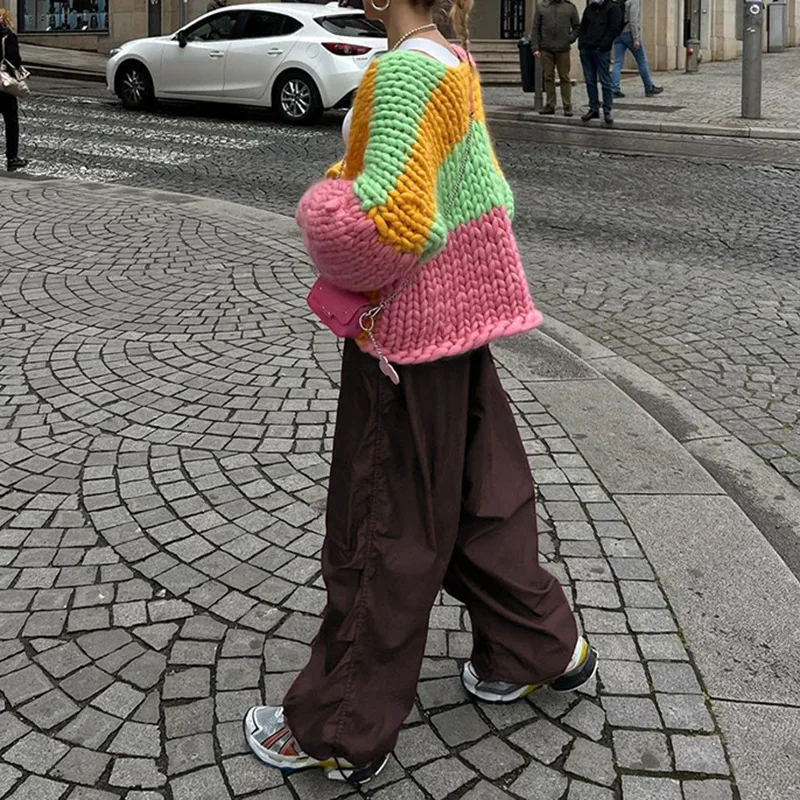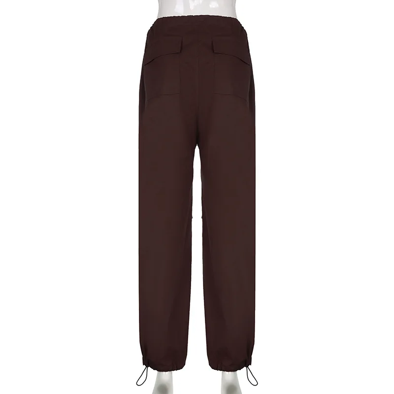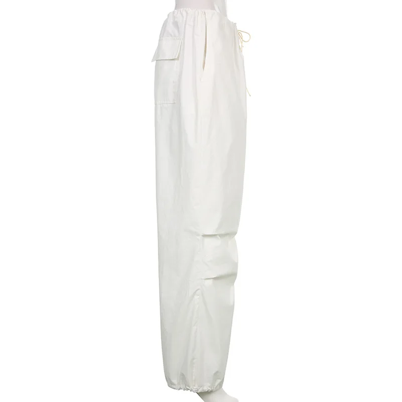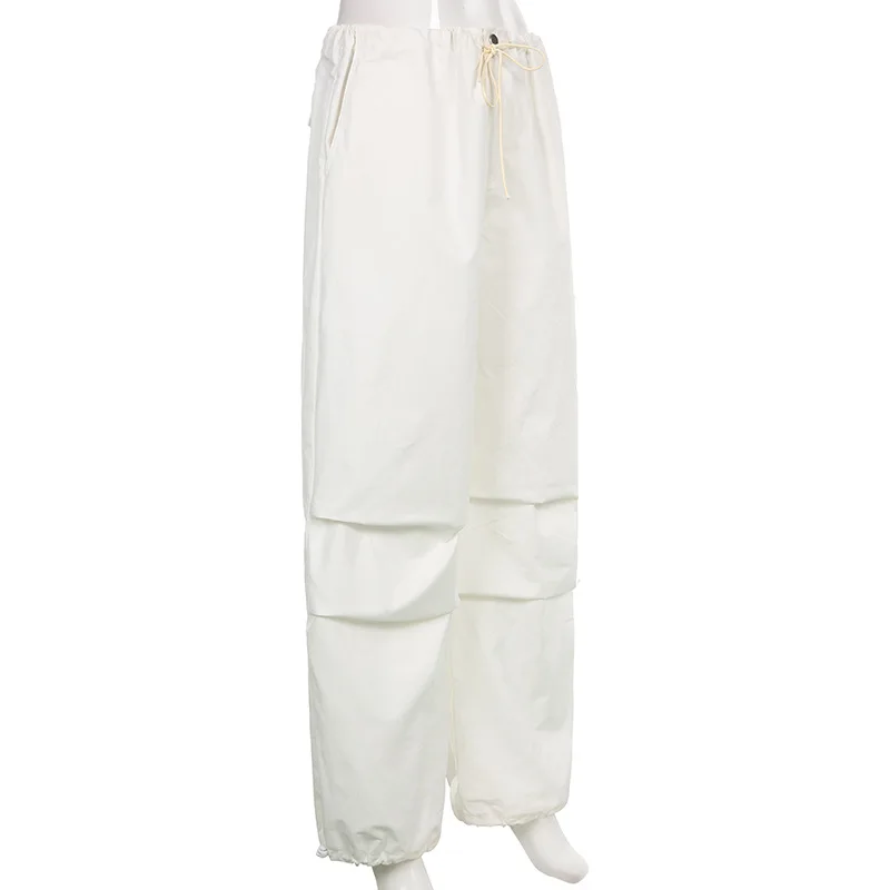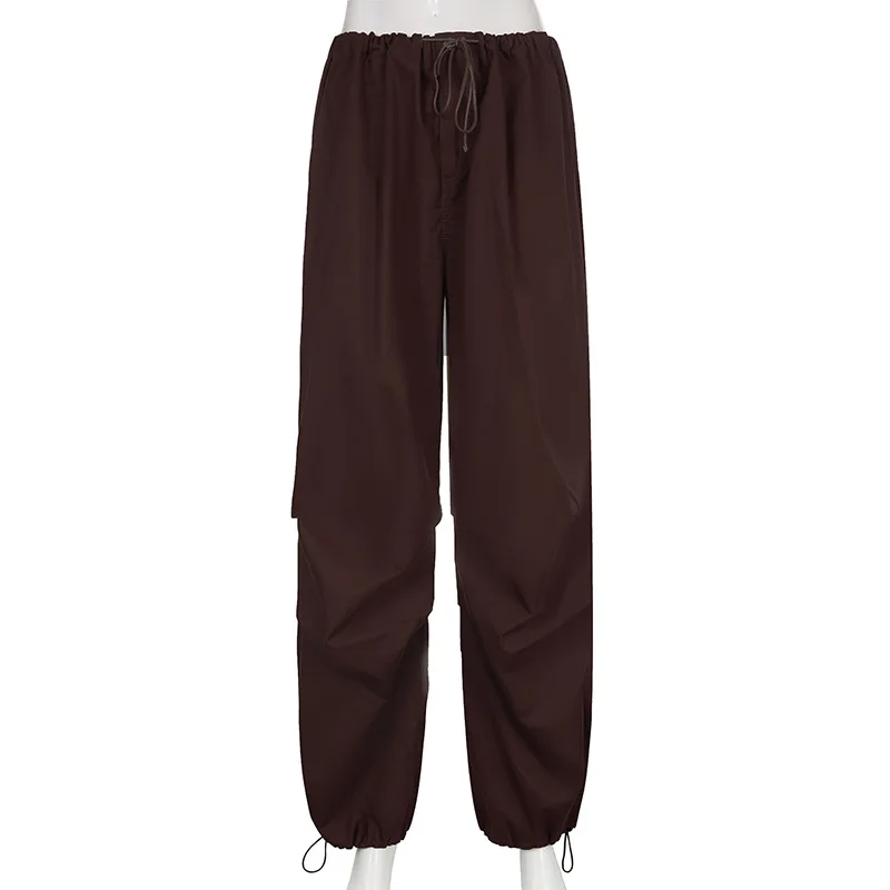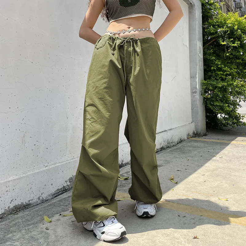 Lizakosht Y2k Baggy Cargo Pants Women Parachute Drawstring Low Waist Hip Hop Sweatpant Summer Wid Leg Green Trousers Streetwear