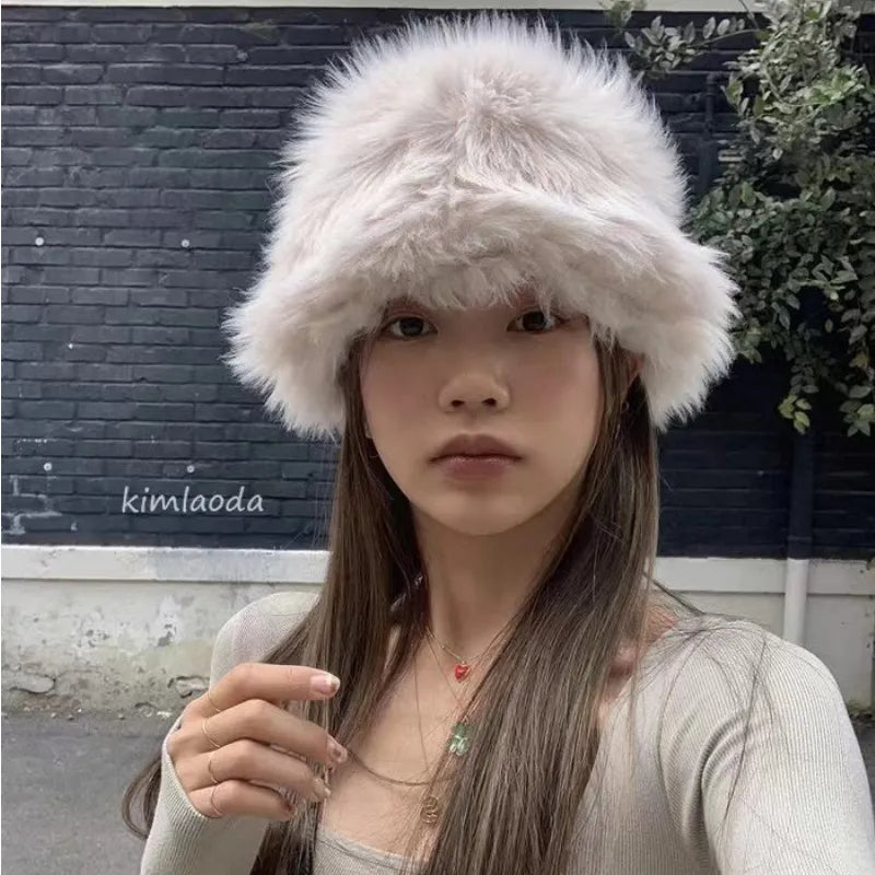 Lizakosht Y2k Europe and America Hats Autumn and Winter New Fox Fur Hair Imitation Mink Fur Hat Female Thickening Warm Plush Fishing Caps