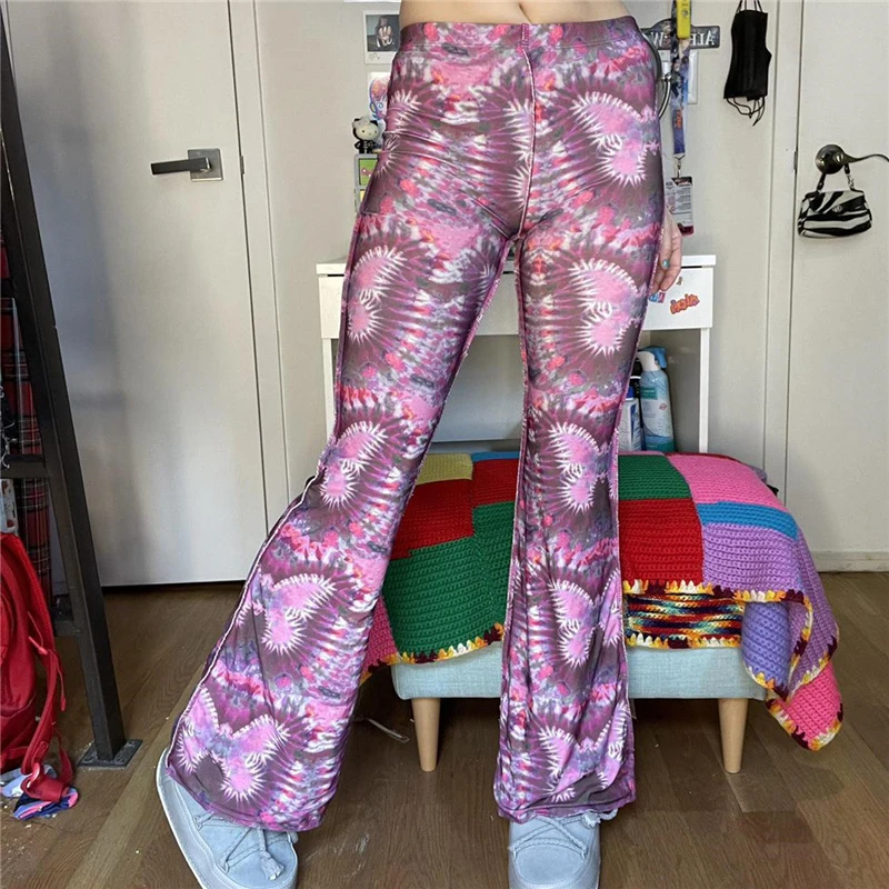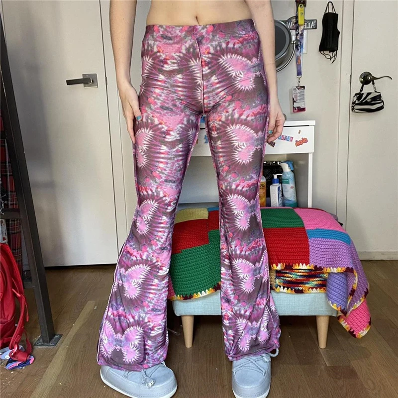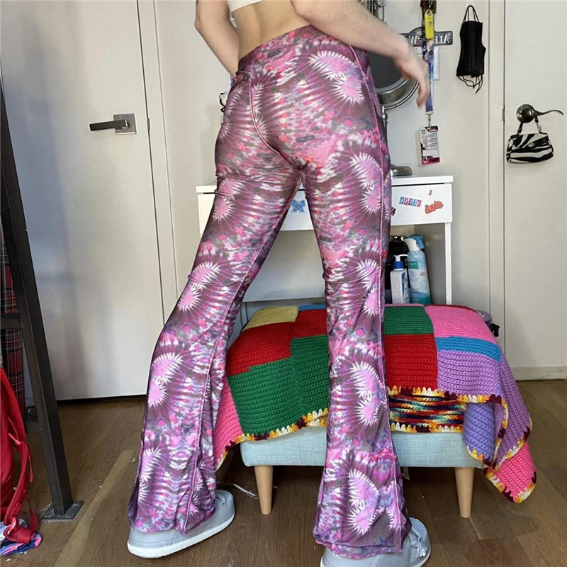 LIZAKOSHT - y2k Pants Women Heart/Butterfly Print Wide Leg Trousers Summer Flared Trouser Low Waist Harajuku Kawaii Streetwear