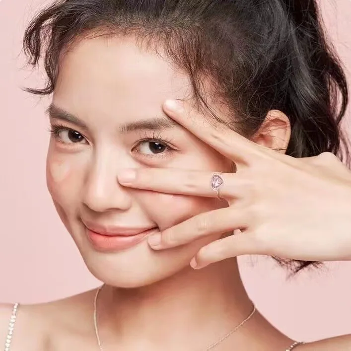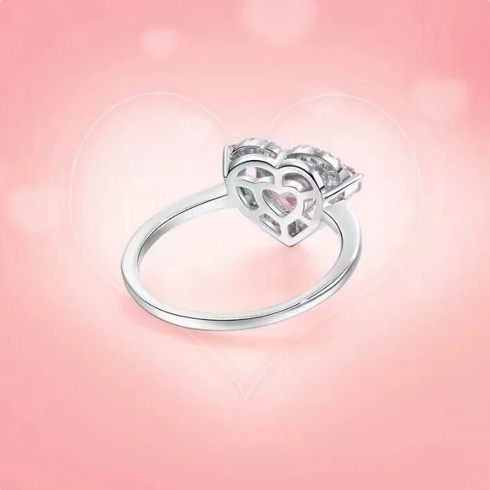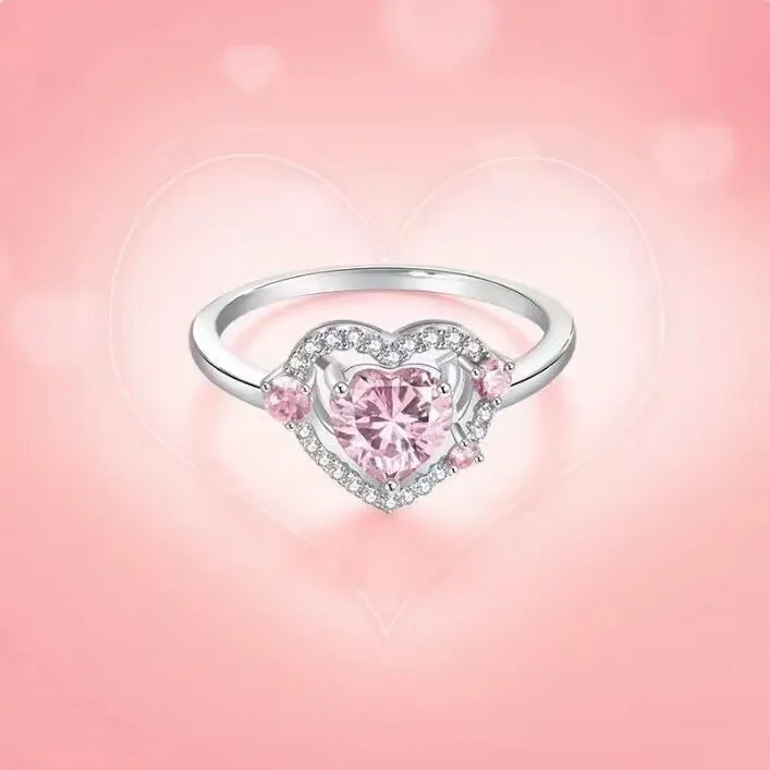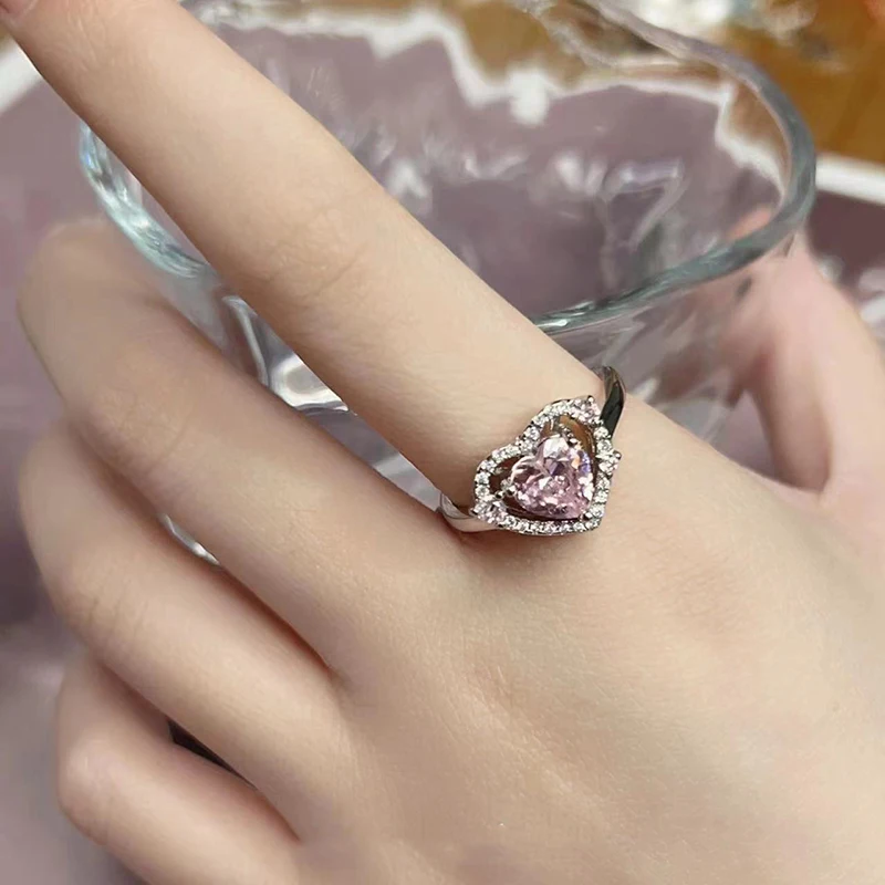 Lizakosht Y2K Pink Crystal Double Heart Ring Vintage Shiny Zircon Opal Love Open Ring for Women Girl Engaged Wedding Jewelry Gifts