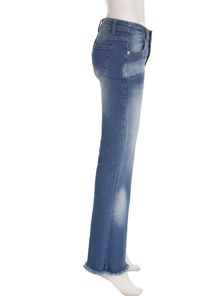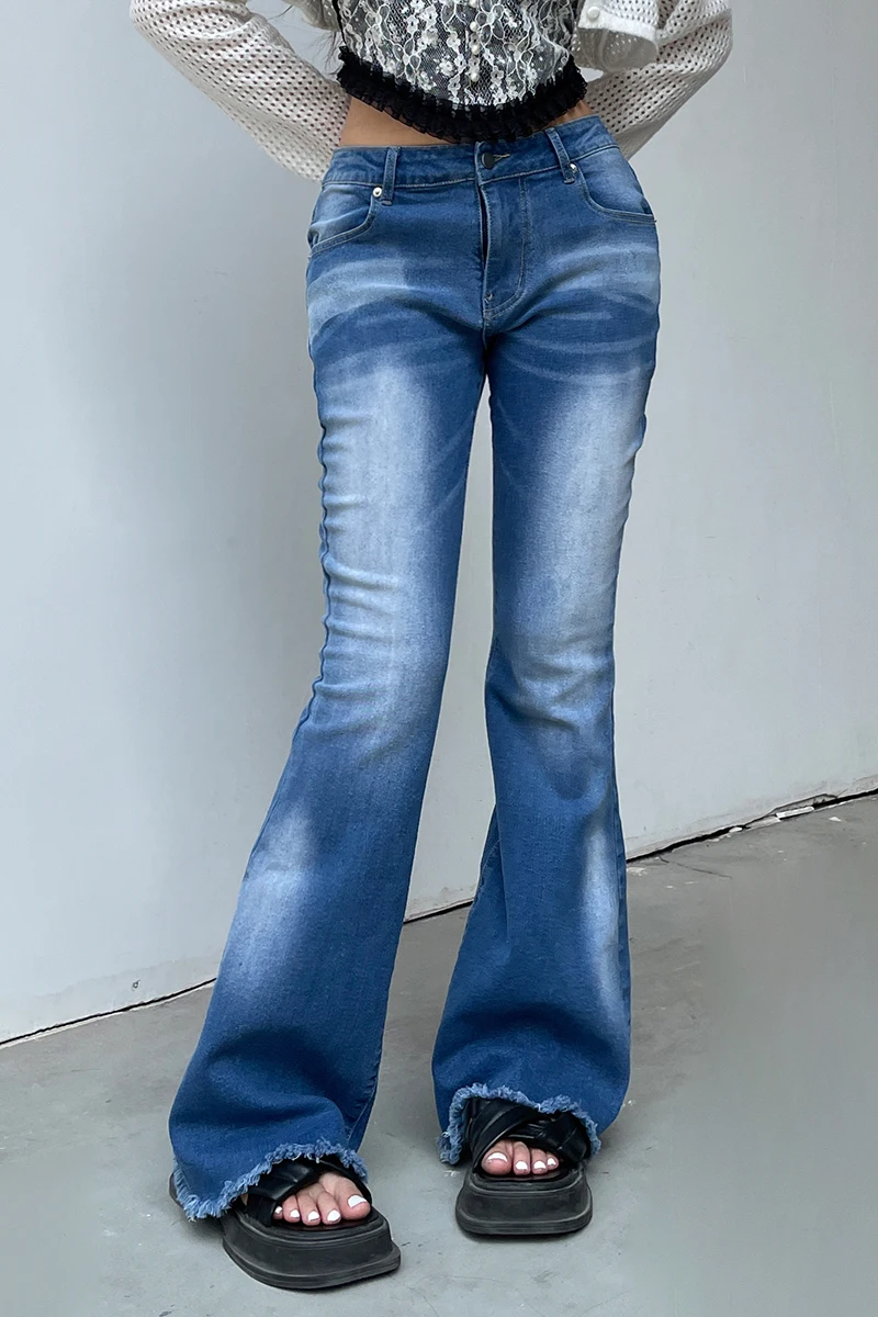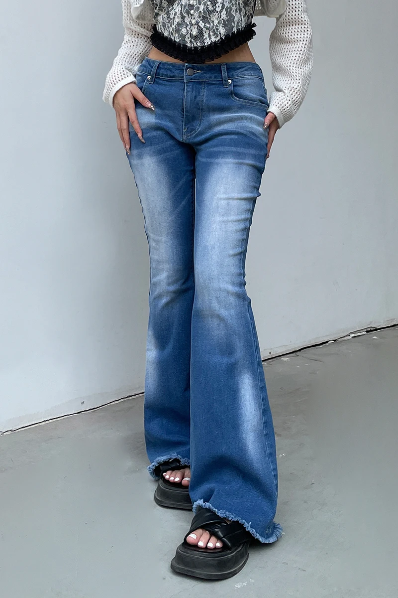 LIZAKOSHT - Y2K Streetwear Washed Skinny Flare Pants Aesthetic Fashion Vintage Denim Trouser Low Waist Korean femme Boot Cut Pants