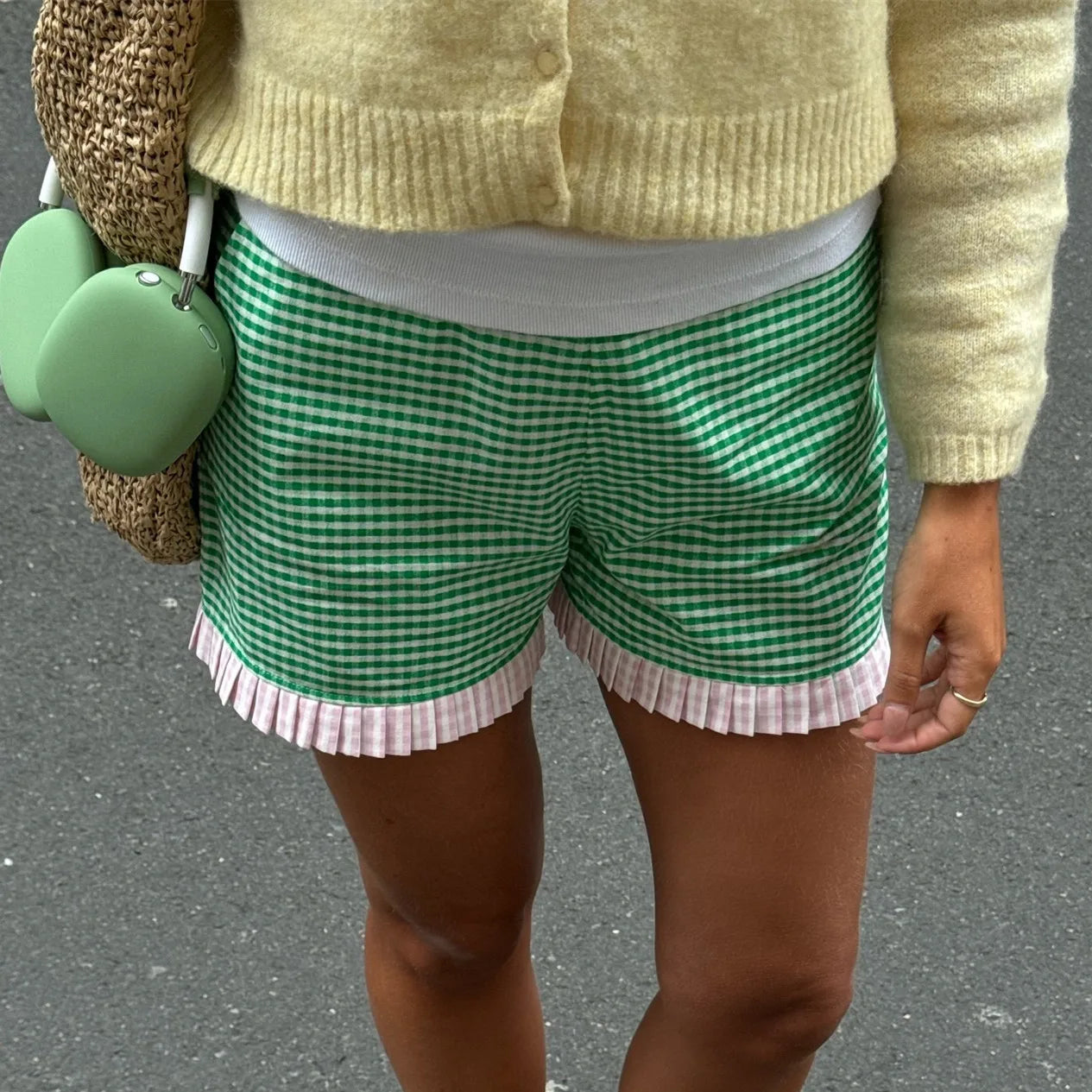 LIZAKOSHT  -  Y2K Women’s Ruffle Hem Boxer Shorts Cute Elastic High Waist Plaid Print Loose Shorts Summer Going Out Trousers