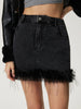LIZAKOSHT - Plush Hem Mini Denim Skirt