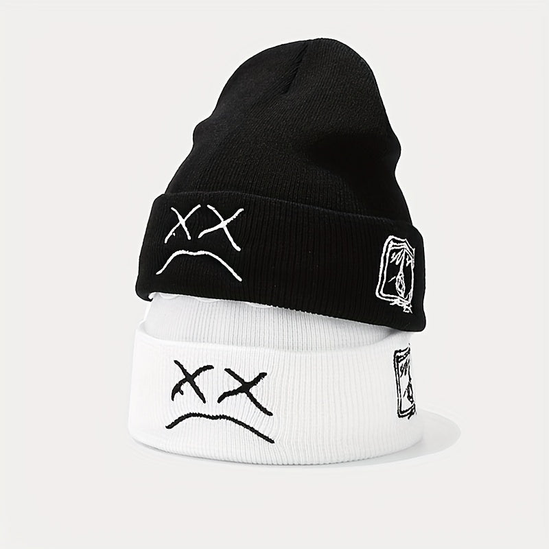 Sad Expression LIL PEEP Embroidered Cold Hat Men's Warm Knitted Hat Women's Cool Trendy Hooded Hat