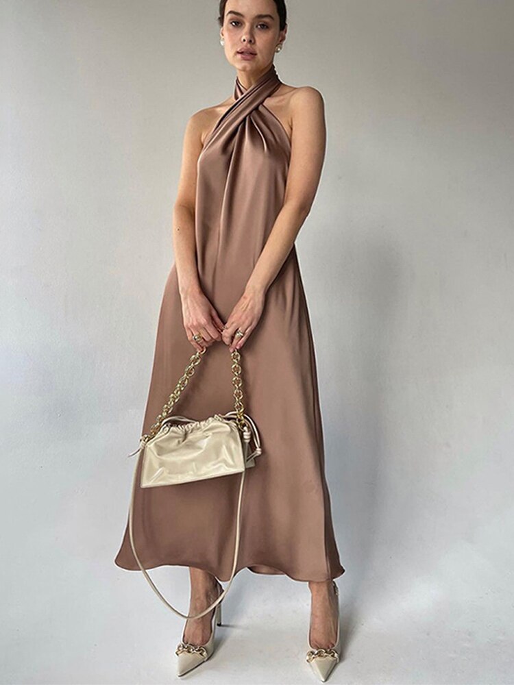 Style 1: Satin Sexy Halter Backless Long Women Dress