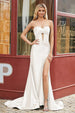 Sweetheart Strapless Evening Dresses Satin Sleeveless Backless Side Slit Pleats Ruched Party Gowns Elegant Hollowed Dating Dress