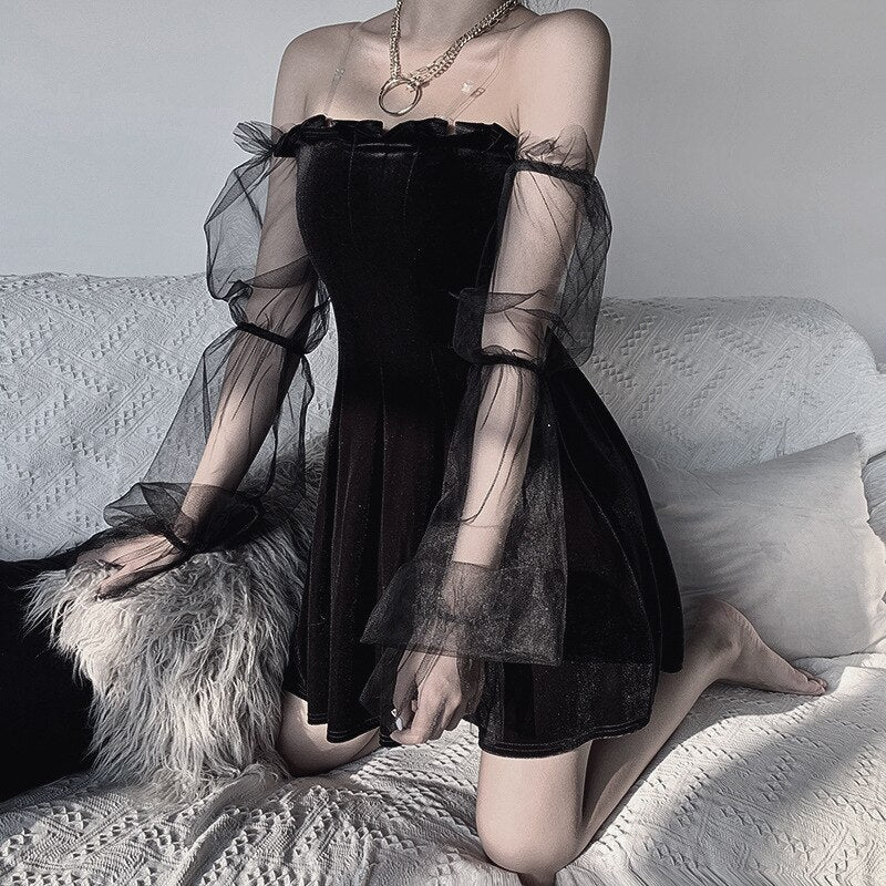 Velvet Vintage Dress Sexy Summer Gothic Party Dress Women Black Mini Dresses A Line Vestidos Patchwork Goth Club Highstreet