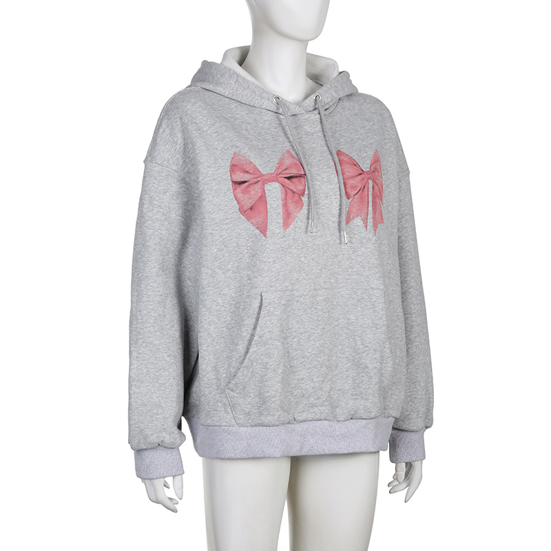 Lizakosht Harajuku Bow Print Loose Hoodies Autumn Casual Full Sleeve Hooded Sweatshirt Women Oversized Pullovers y2k Street Style