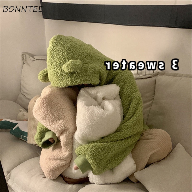 Lizakosht With Hat Hoodies Women Kawaii Ulzzang Zip-up Plus Velvet Winter Chic Fashion Preppy Girls Sweatshirt Popular Ladies Clothing Ins