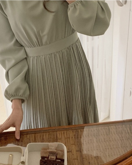 Women Autumn Fall New Arrivals Design Elegant Retro Vintage Korean Style Solid Long Dress