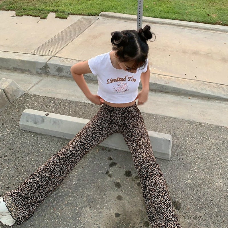 Y2K Pants E Girl Trousers Women Animal Leopard Flare Skinny Pant Two-layers Mesh Aesthetic Female Sweatpants Spring Lady Bottoms