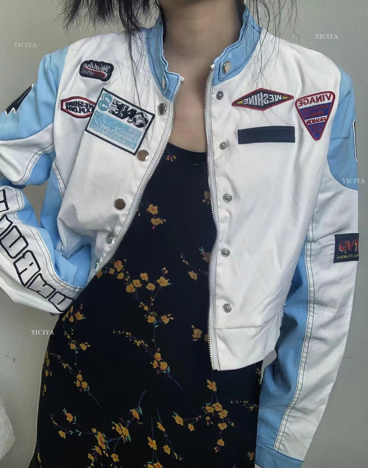 Bomber Woman Varsity Race Car Jacket Vintage street Embroidery Long Sleeves American Baseball Jackets Bombers Y2k Coats